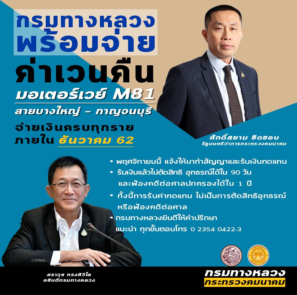 กรมทางหลวงพร้อมจ่าย ค่าเวนคืนมอเตอร์เวย์ M81 |