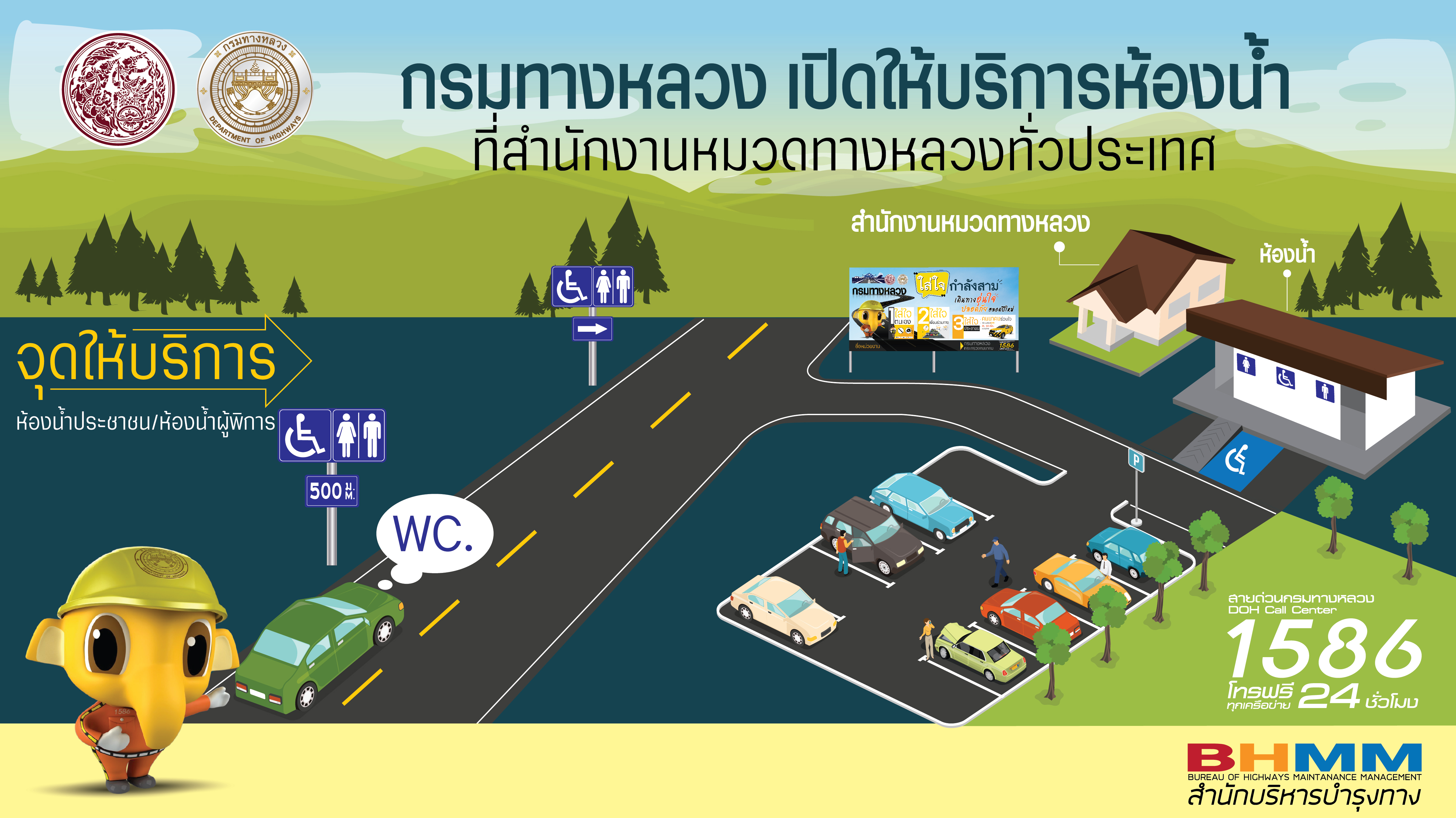 กรมทางหลวง เปิดให้บริการห้องน้ำ ที่สำนักงานหมวดทางหลวงทั่วประเทศ กว่า 500 แห่ง |