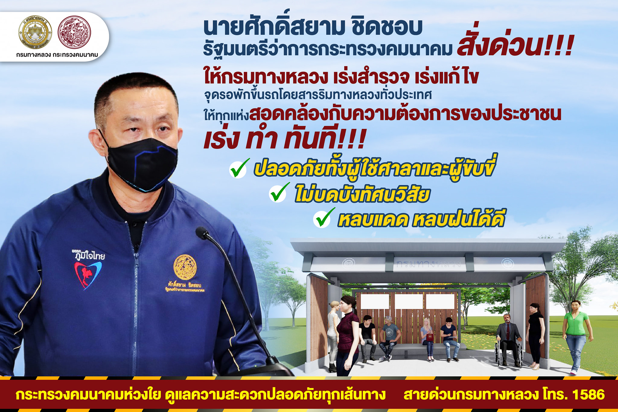 กรมทางหลวงเร่งสำรวจ แก้ไขจุดรอพักขึ้นรถโดยสารริมทางหลวงทั่วประเทศให้สอดคล้องกับความต้องการของประชาชน |