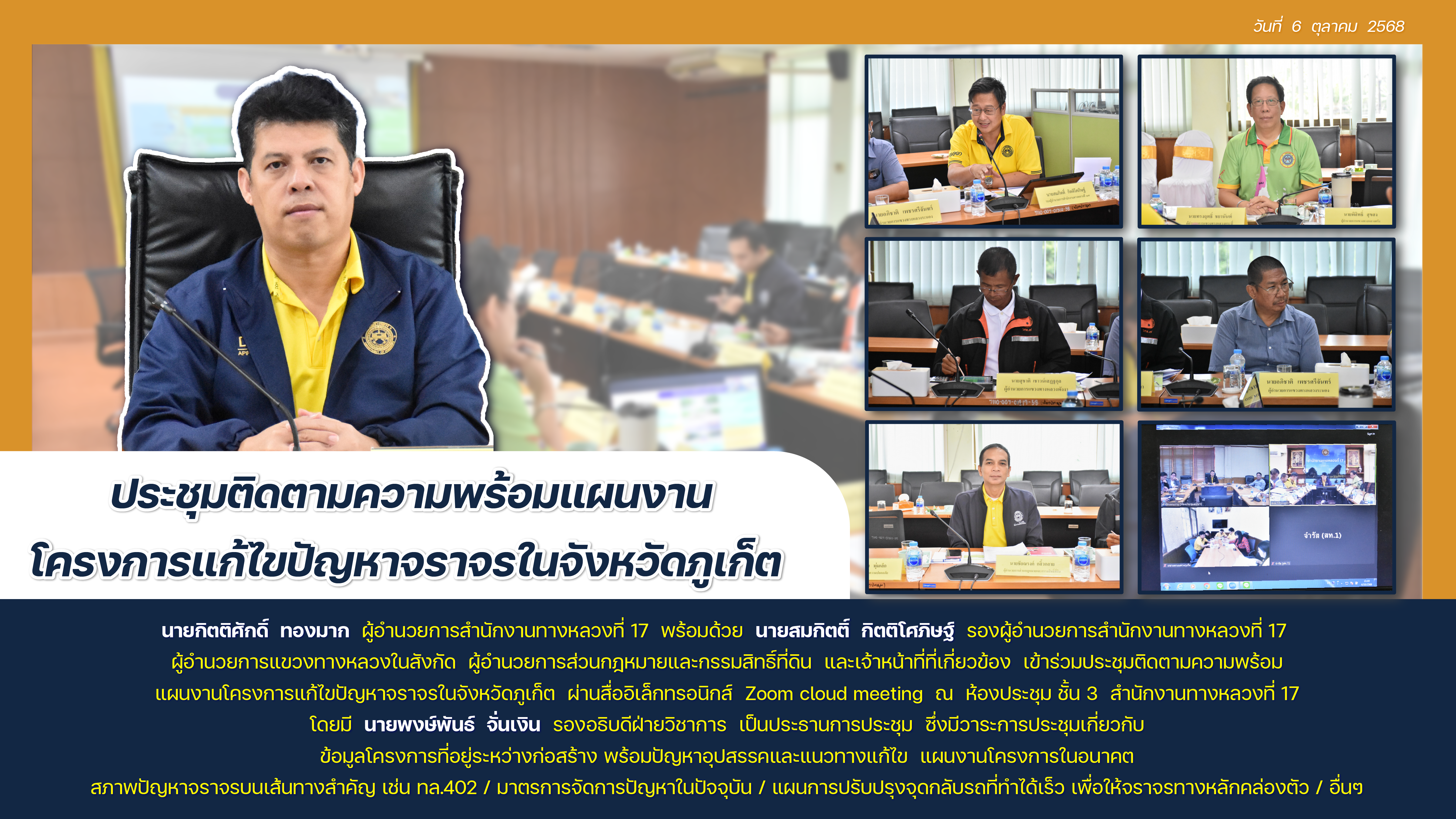 ประชุมติดตามความพร้อมแผนงาน โครงการแก้ไขปัญหาจราจรในจังหวัดภูเก็ต วันที่ 6 ตุลาคม 2568