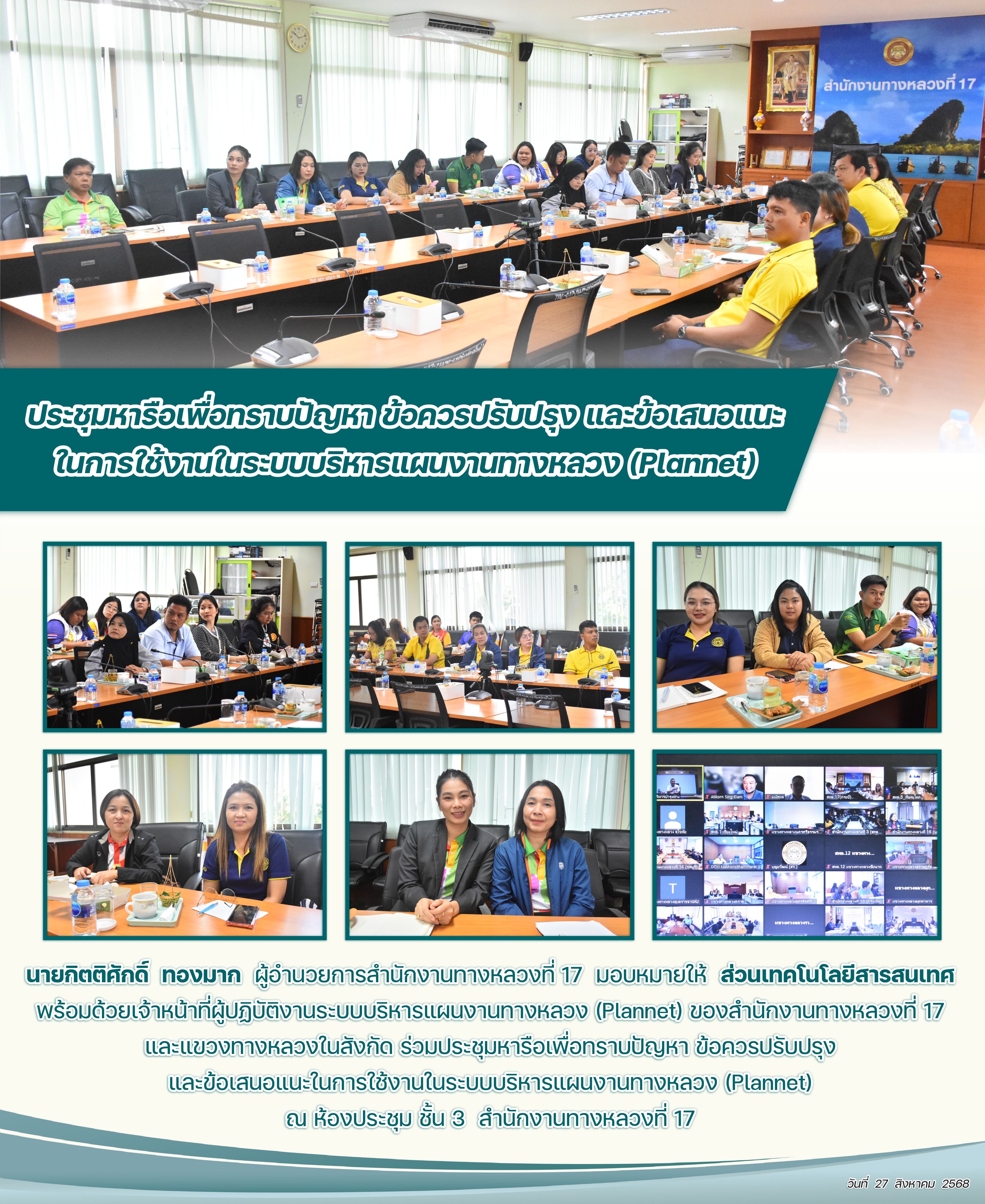 ประชุมหารือเพื่อทราบปัญหา ข้อควรปรับปรุง และข้อเสนอแนะ ในการใช้งานในระบบบริหารแผนงานทางหลวง (Plannet) วันที่ 27 สิงหาคม 2568