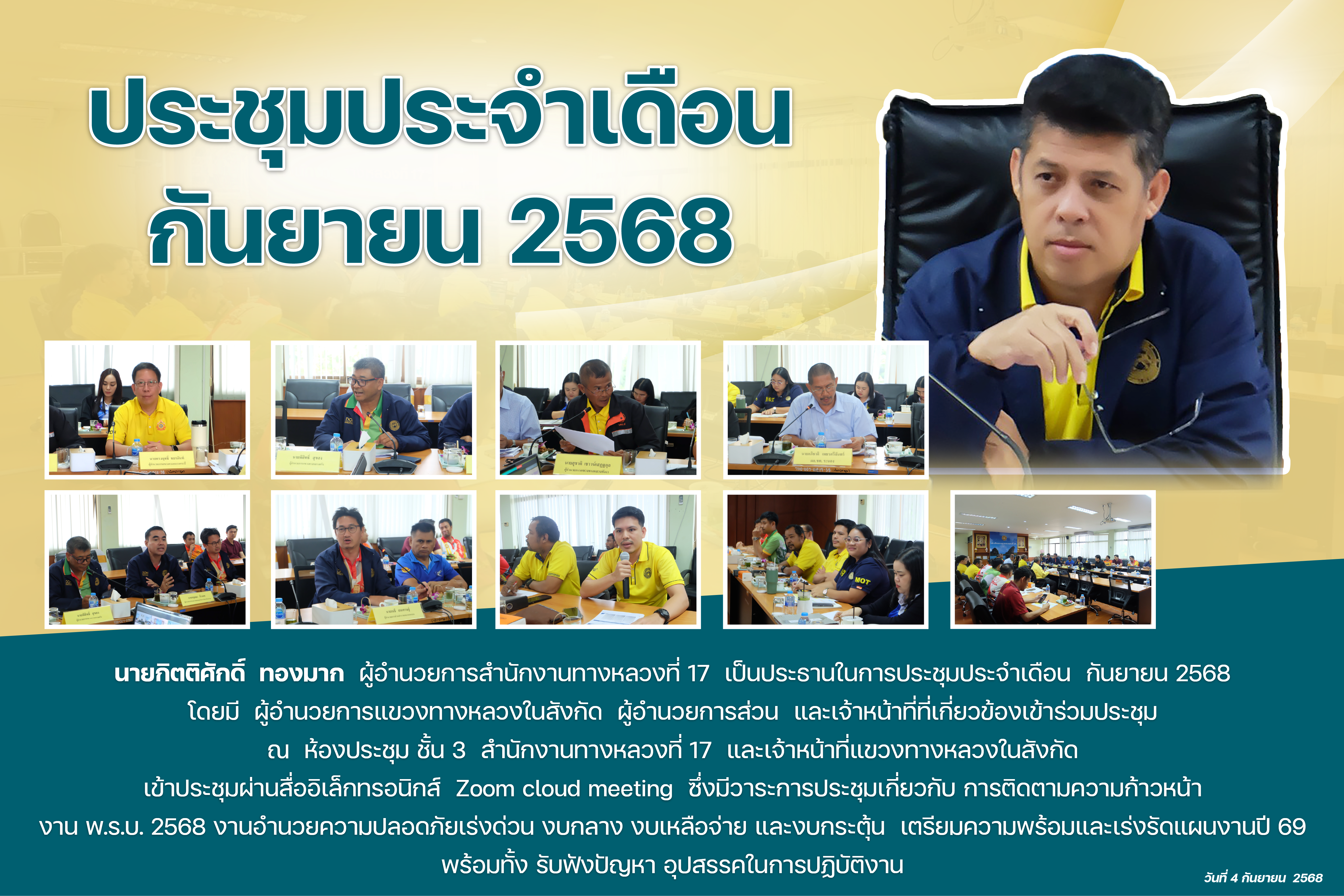 ประชุมประจำเดือน กันยายน 2568 วันที่ 4 กันยายน 2568