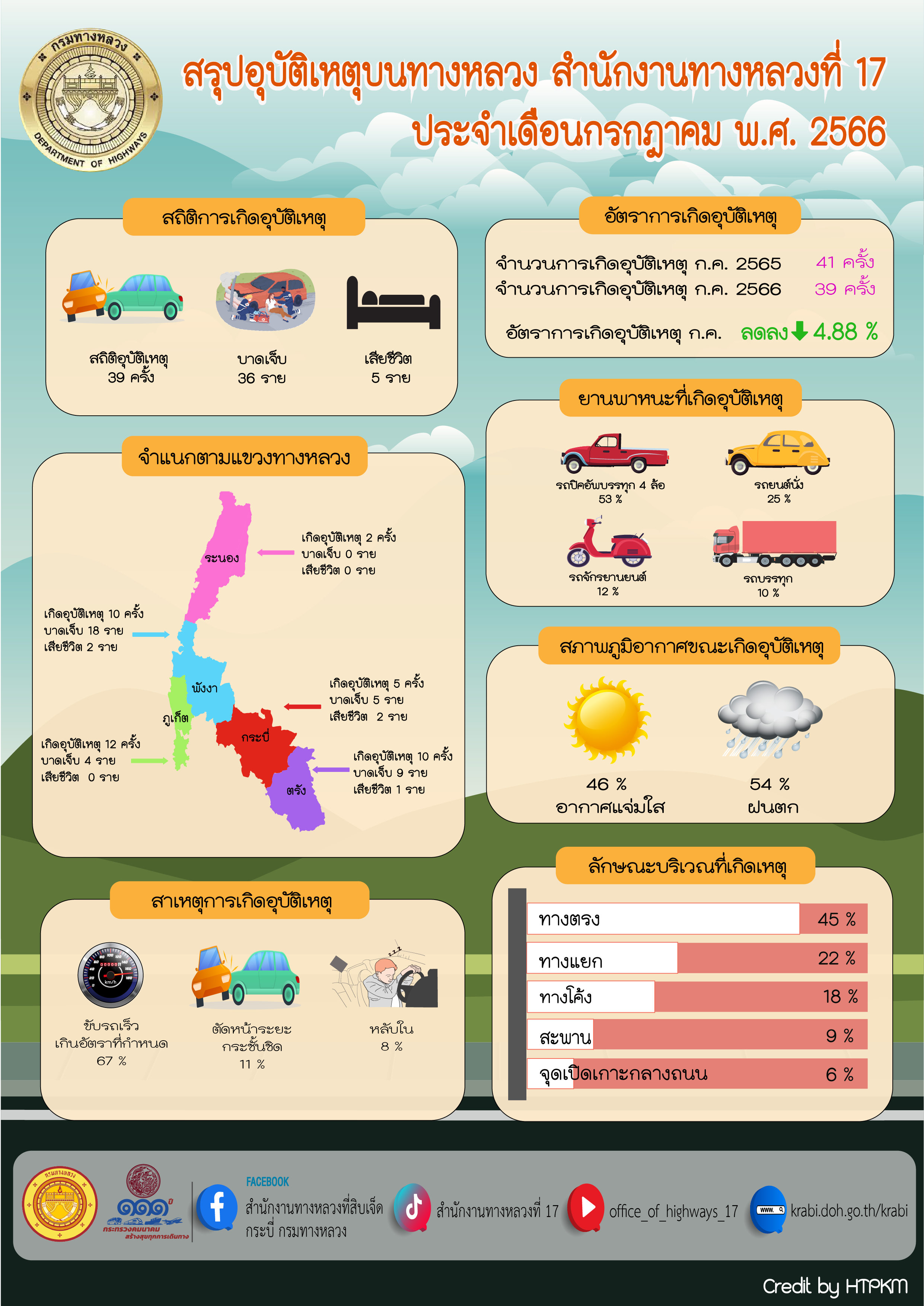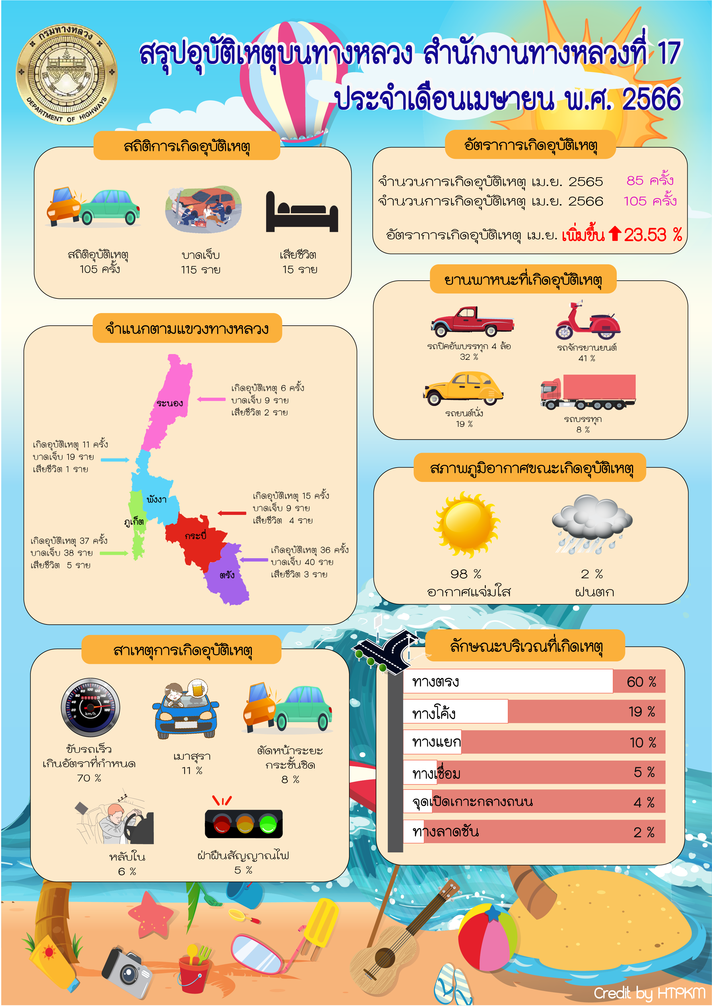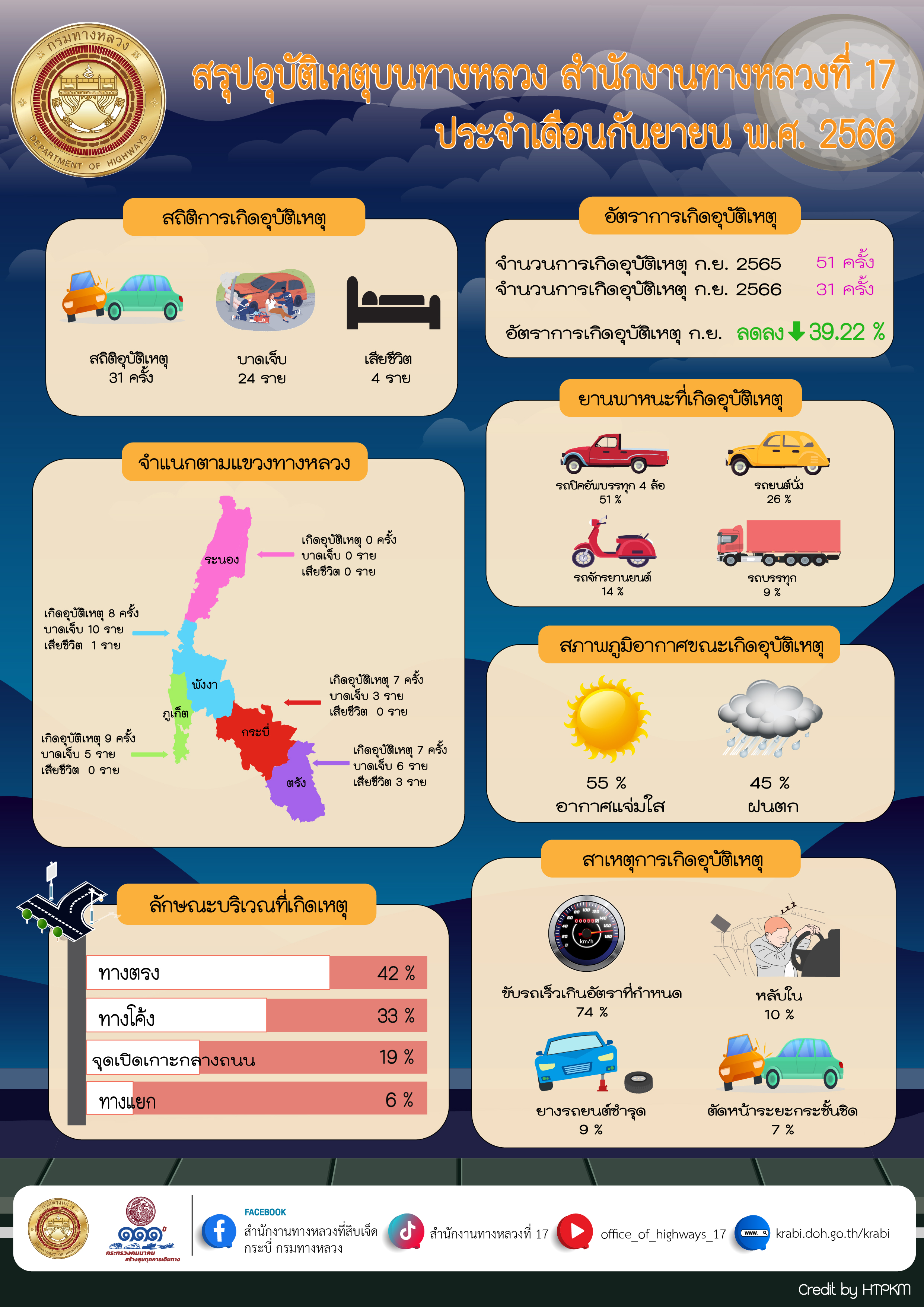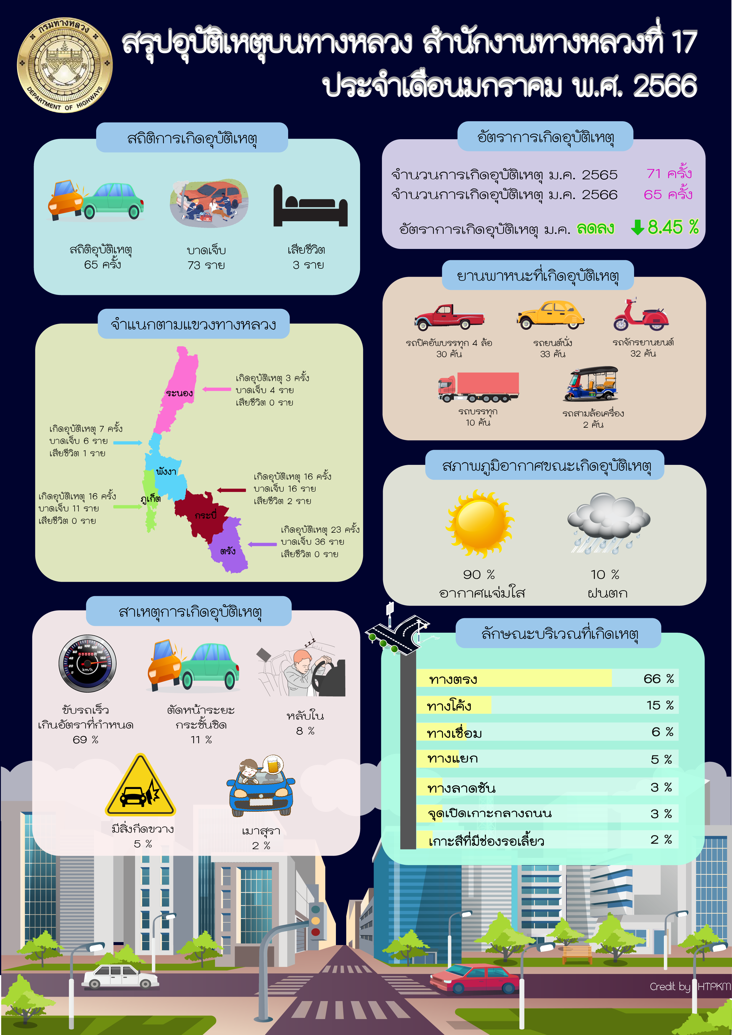 ข้อมูลข่าว : สรุปอุบัติเหตุบนทางหลวง สำนักงานทางหลวงที่17 ประจำปี 2566