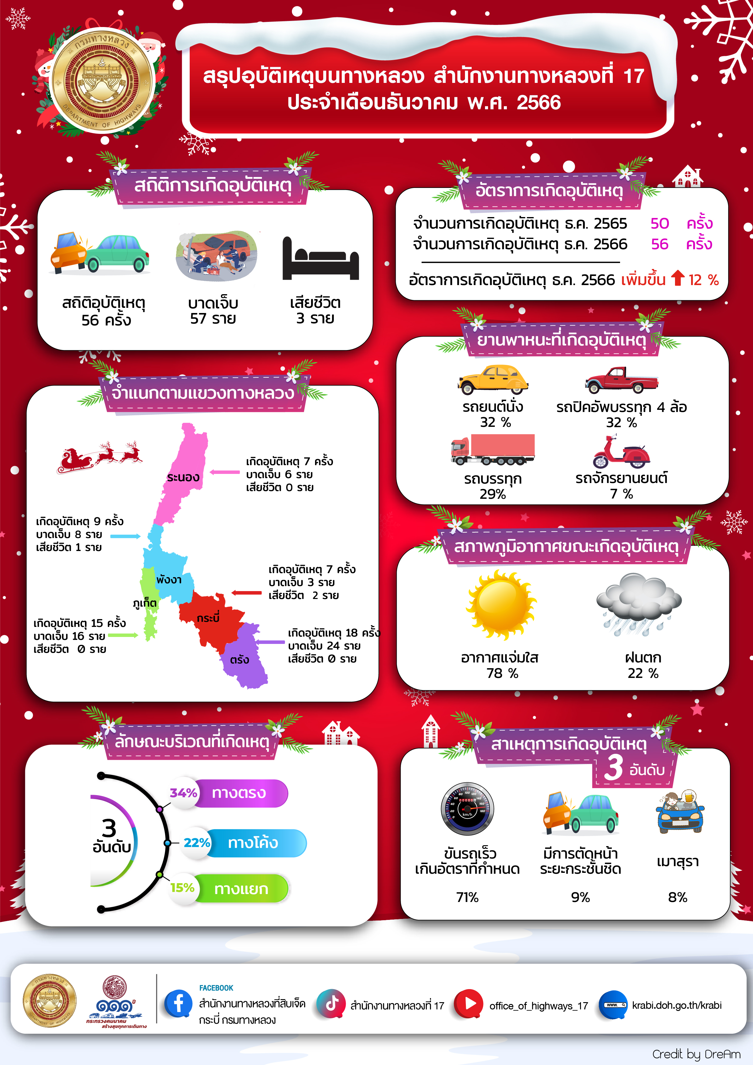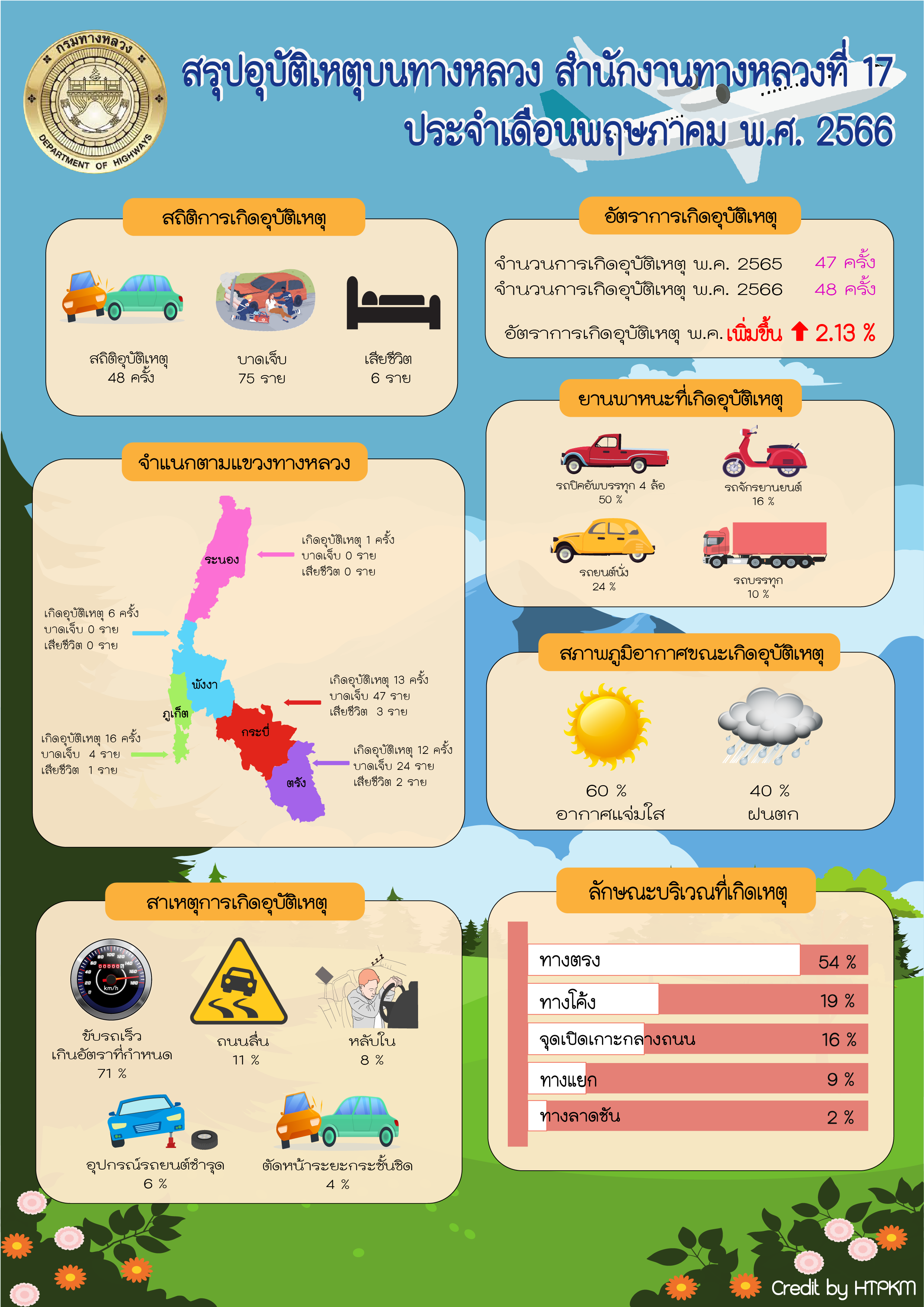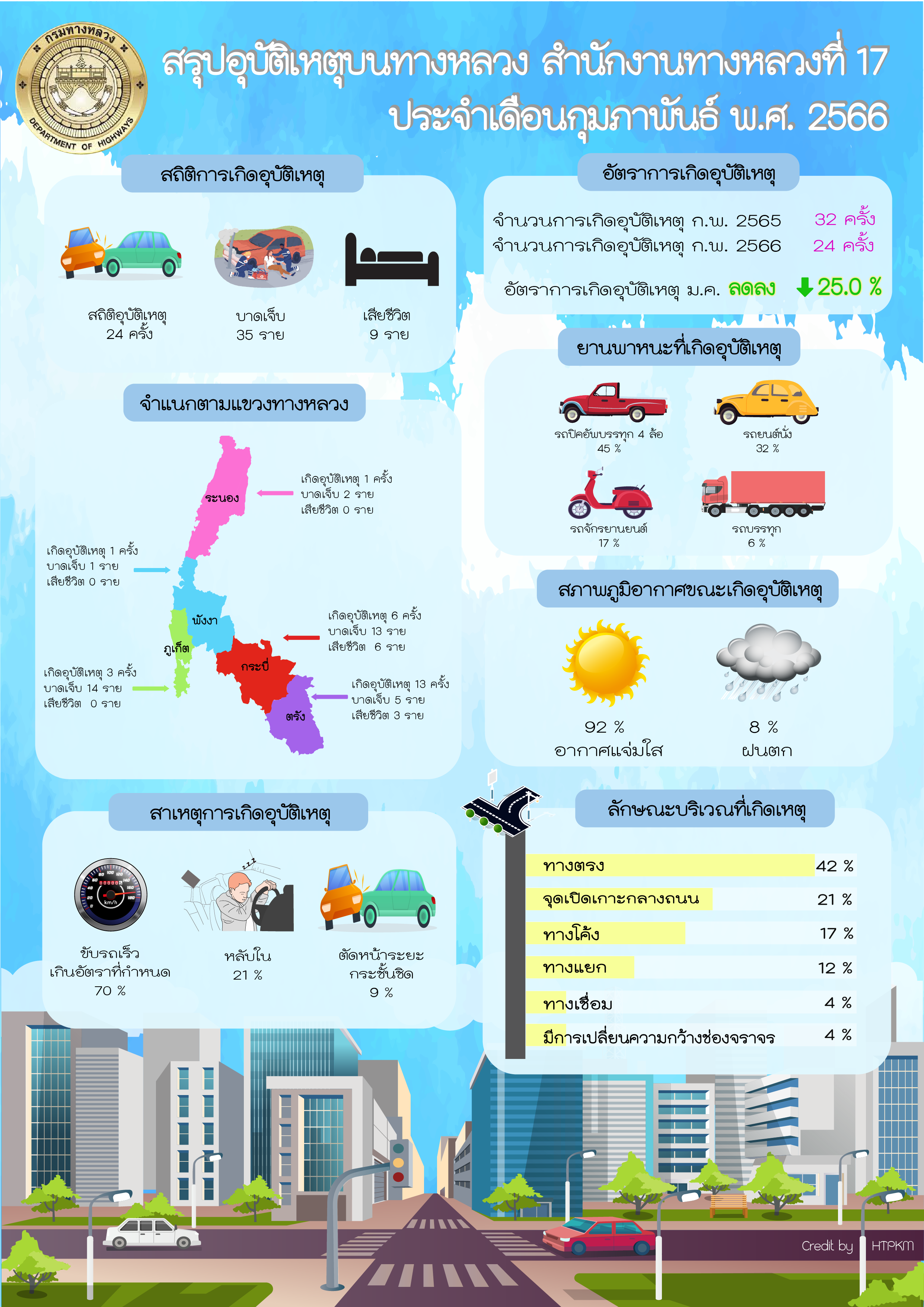 สรุปอุบัติเหตุบนทางหลวง สำนักงานทางหลวงที่17 ประจำปี 2566