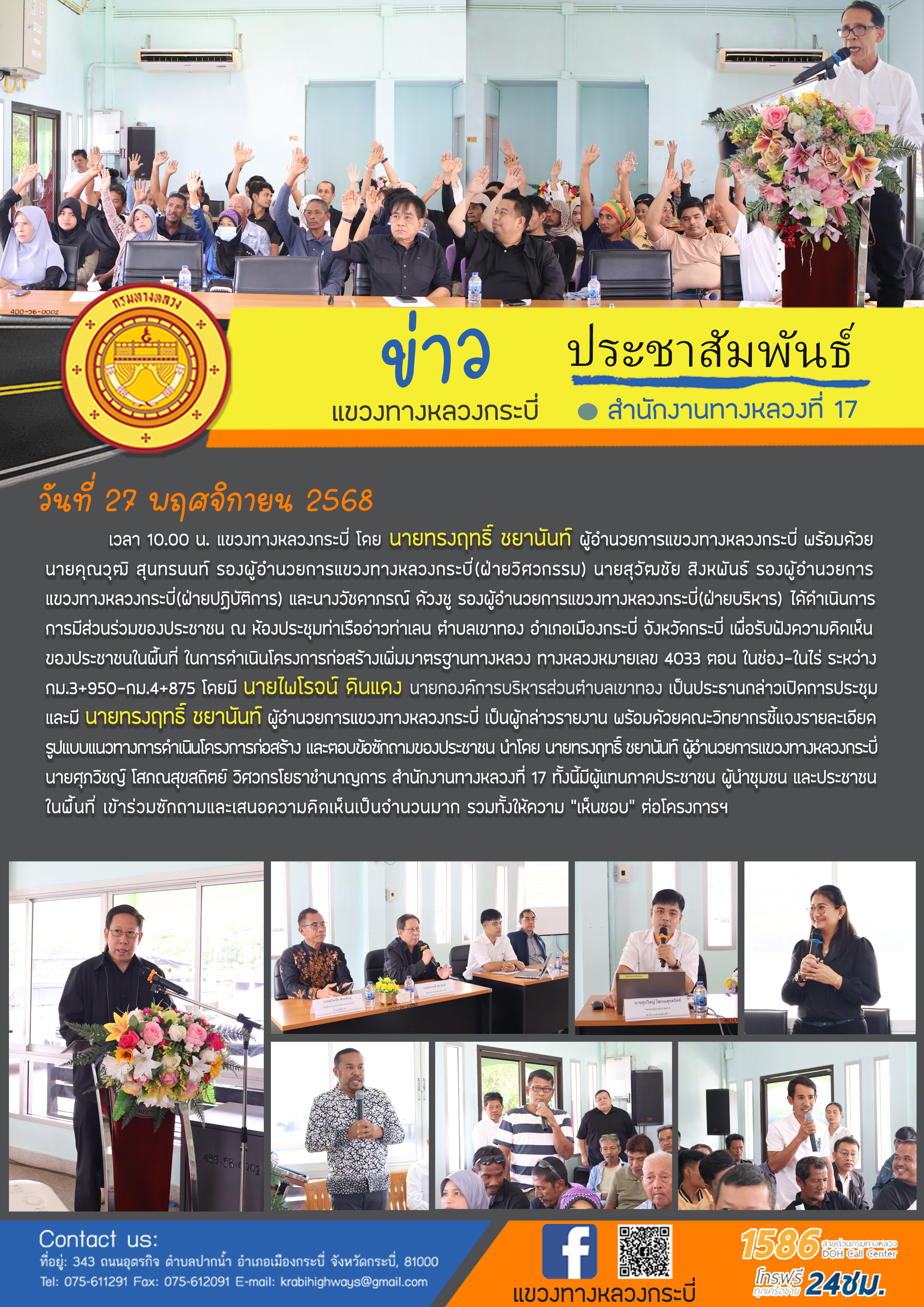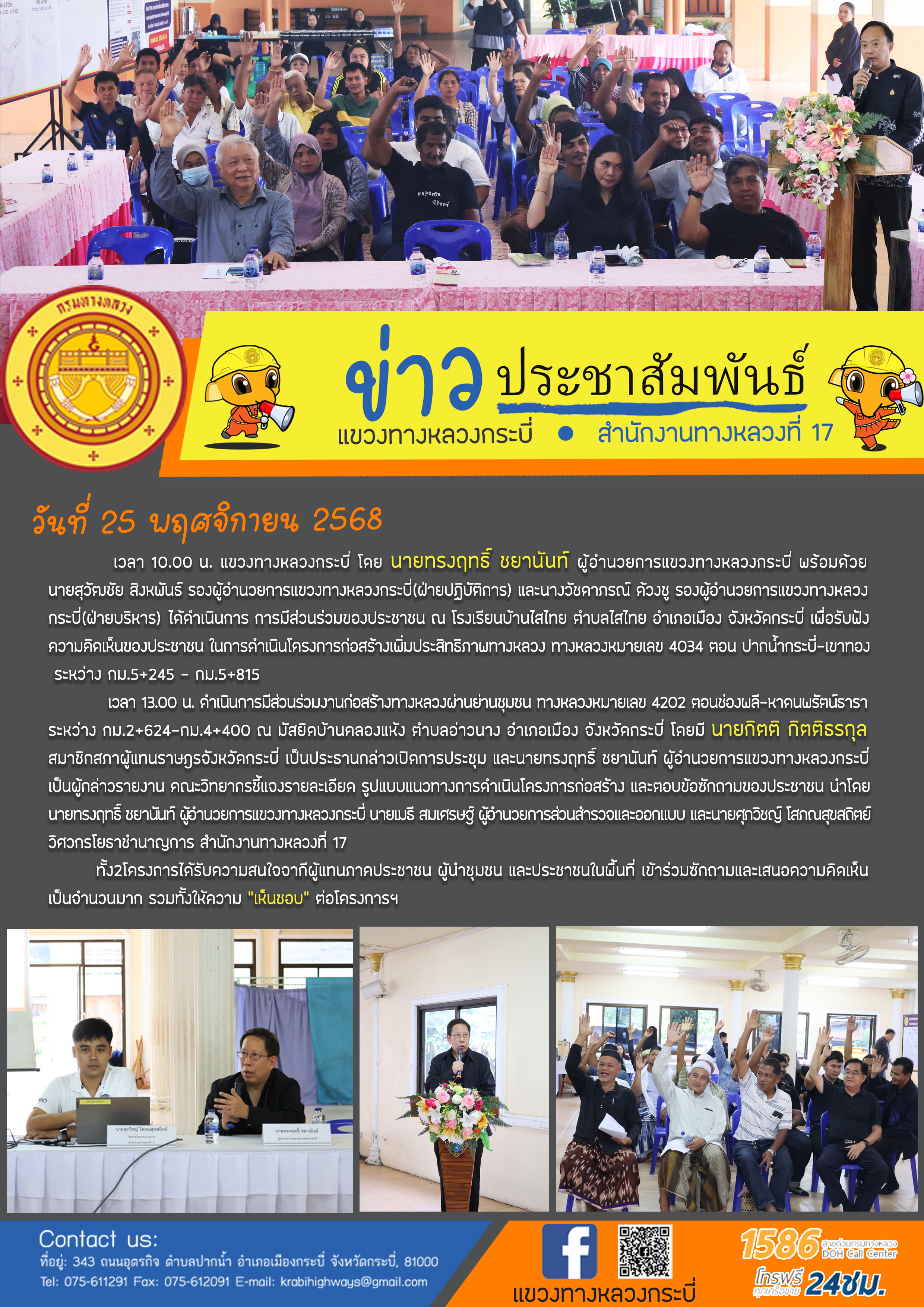 10 26/11/2568 แขวงทางหลวงกระบี่ดำเนินการ การมีส่วนร่วมของประชาชน ทางหลวงหมายเลข 4034 และ4202
