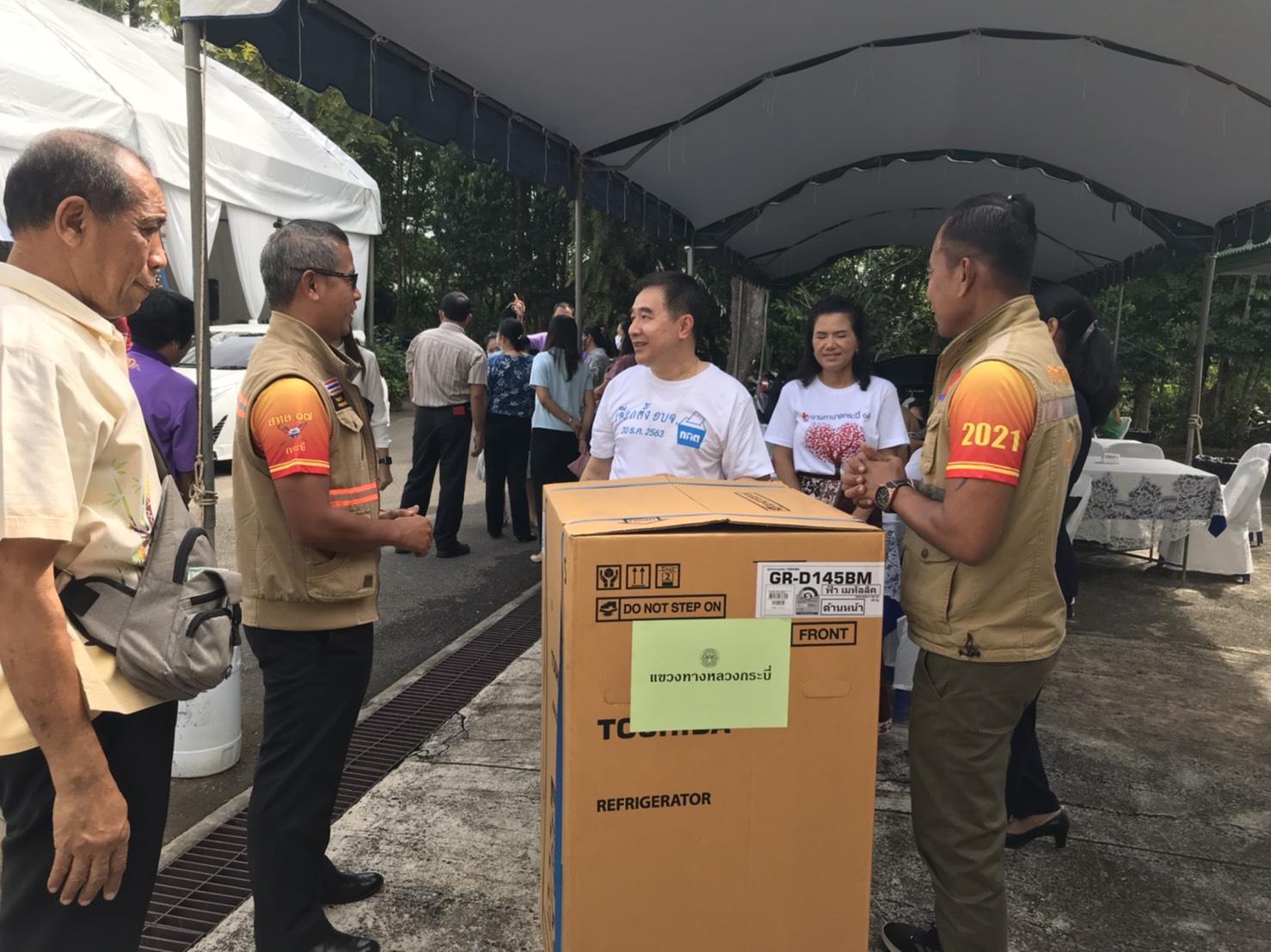 นายปรีชา วิเศษสิทธิ์ ผู้อำนวยการแขวงทางหลวงกระบี่ บริจาคของรางวัลสำหรับออกร้านมัจฉากาชาดจังหวัดกระบี่