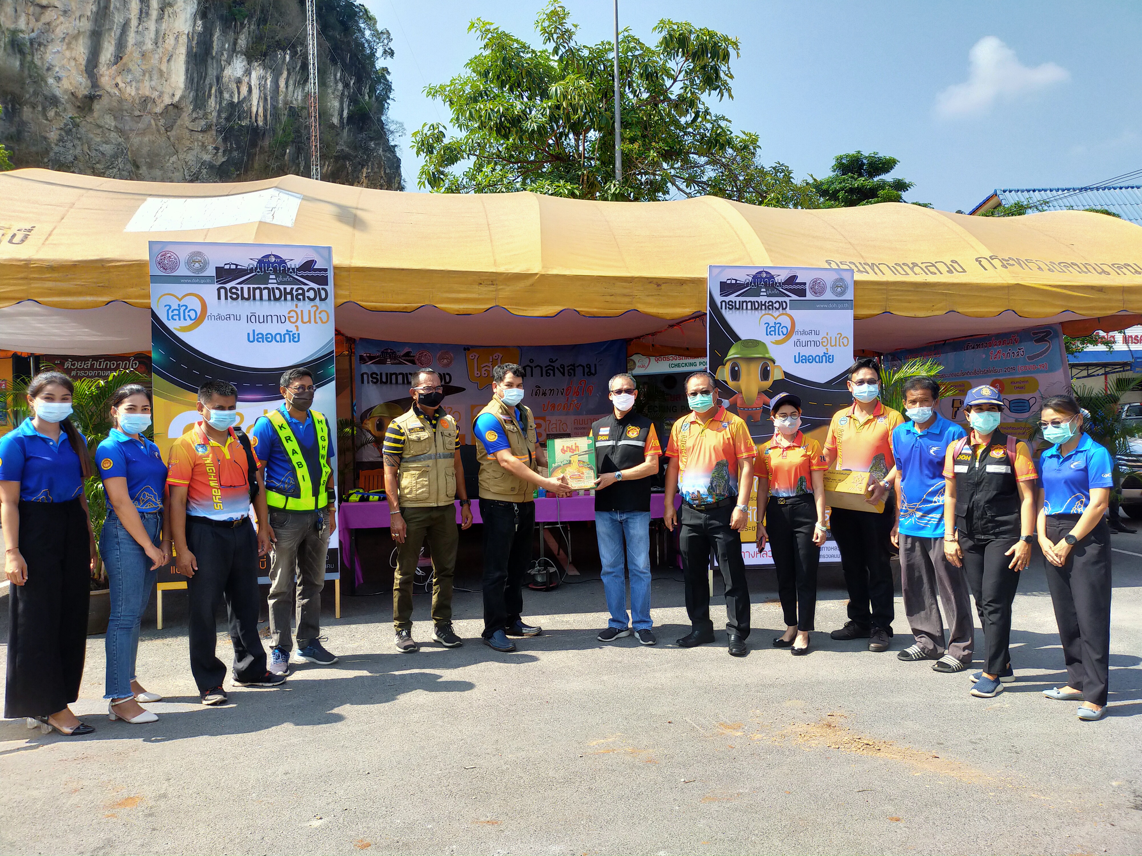วันที่ 9 เมษายน 2564 เวลา 9.00 น. นายคงฤทธิ์ ปัญญาแก้ว ผู้อำนวยการสำนักงานทางหลวงที่ 17 และคณะ ตรวจเยี่ยมพร้อมมอบสิ่งของแก่เจ้าหน้าที่ประจำจุดอำนวยความสะดวกและปลอดภัยในช่วงเทศกาลสงกรานต์ 2564 ณ สามแยกวัดถ้ำเสือ อำเภอเมืองจังหวัดกระบี่ โดยมี นายสุวัฒชัย สิงหพันธ์ รองผู้อำนวยการแขวง ทางหลวงกระบี่ ฝ่ายปฏิบัติการ ข้าราชการและเจ้าหน้าที่แขวงทางหลวงกระบี่ รับการตรวจเยี่ยม
