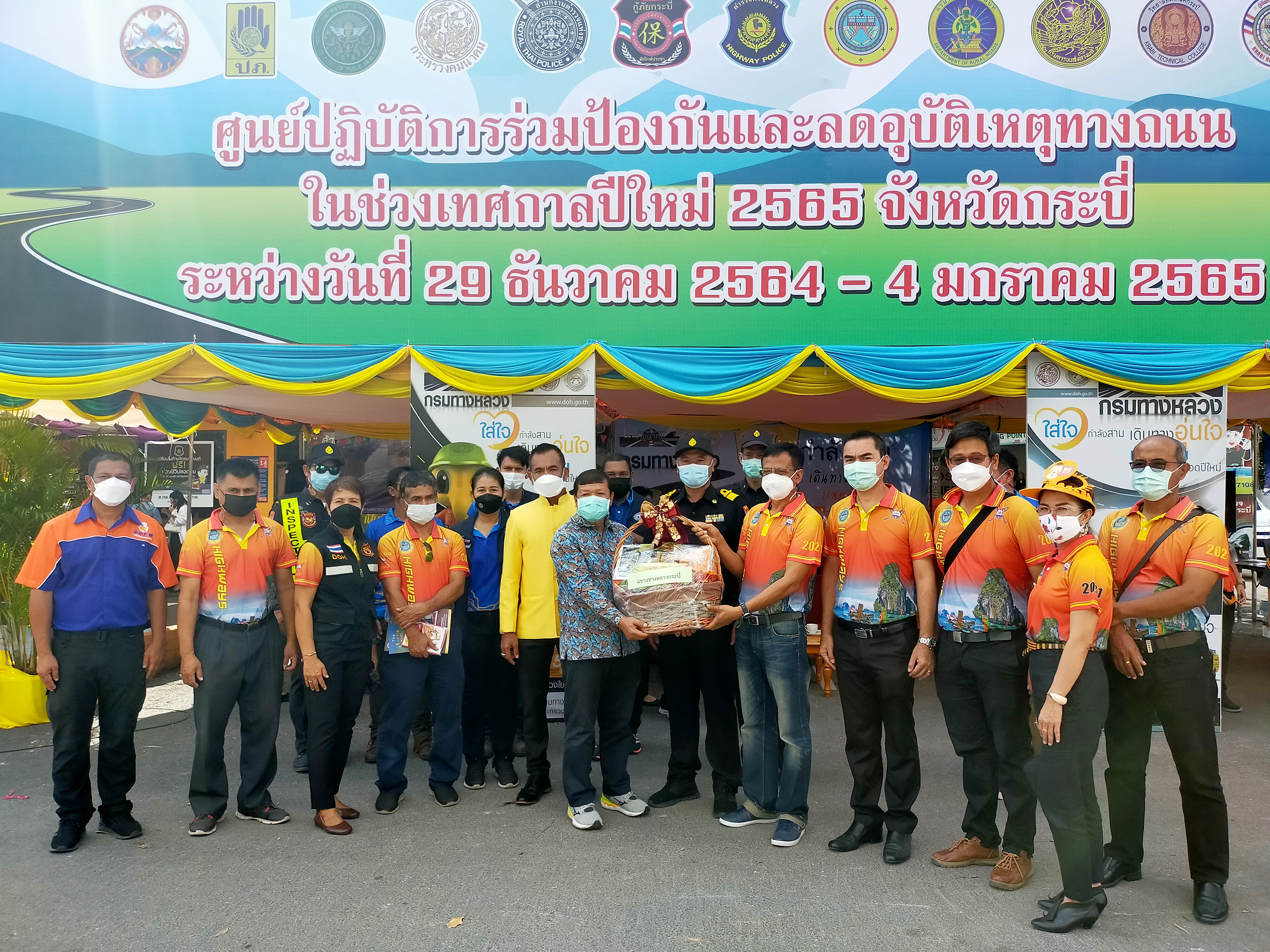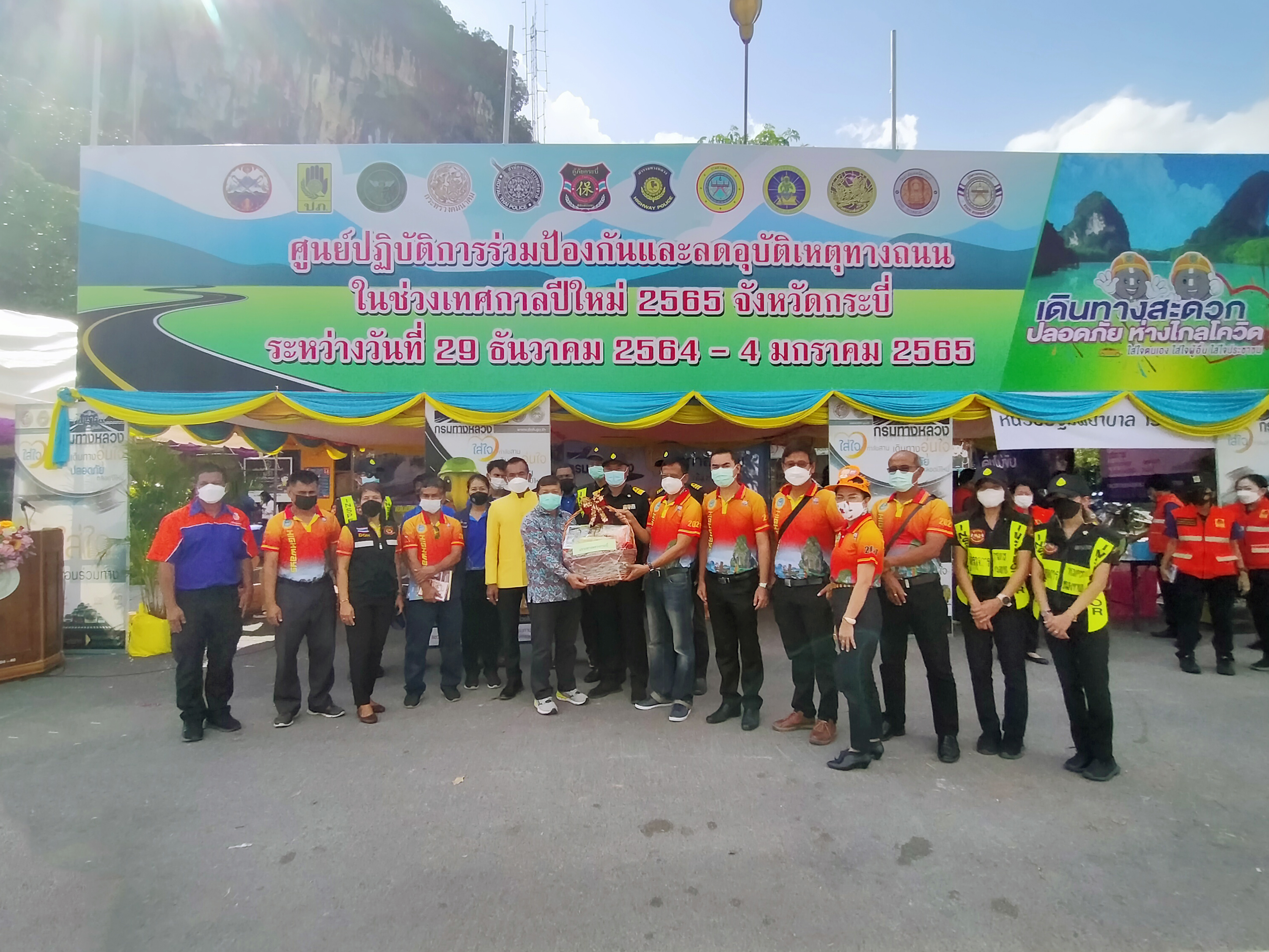 วันที่ 29 ธันวาคม 2564 เวลา 10.00 น. นายเลิศ พัดฉวี รองผู้อำนวยการสำนักงานทางหลวงที่ 17 มอบสิ่งของเพื่อเป็นขวัญและกำลังใจแก่เจ้าหน้าที่ประจำจุดบริการประชาชน ศูนย์ปฏิบัติการป้องกันและลดอุบัติเหตุทางถนนและทางทะเลช่วงเทศกาลปีใหม่ พ.ศ. 2565 ณ ป้อมตำรวจทางหลวง (ทางเข้าวัดถ้ำเสือ) ตำบลกระบี่ใหญ่ อำเภอเมือง จังหวัดกระบี่ โดยมี นายณัฐชนน จันทร์คง รองผู้อำนวยการแขวงทางหลวงกระบี่ ฝ่ายวิศวกรรม และเจ้าหน้าที่ในสังกัดแขวงทางหลวงกระบี่ เป็นผู้รับมอบ
