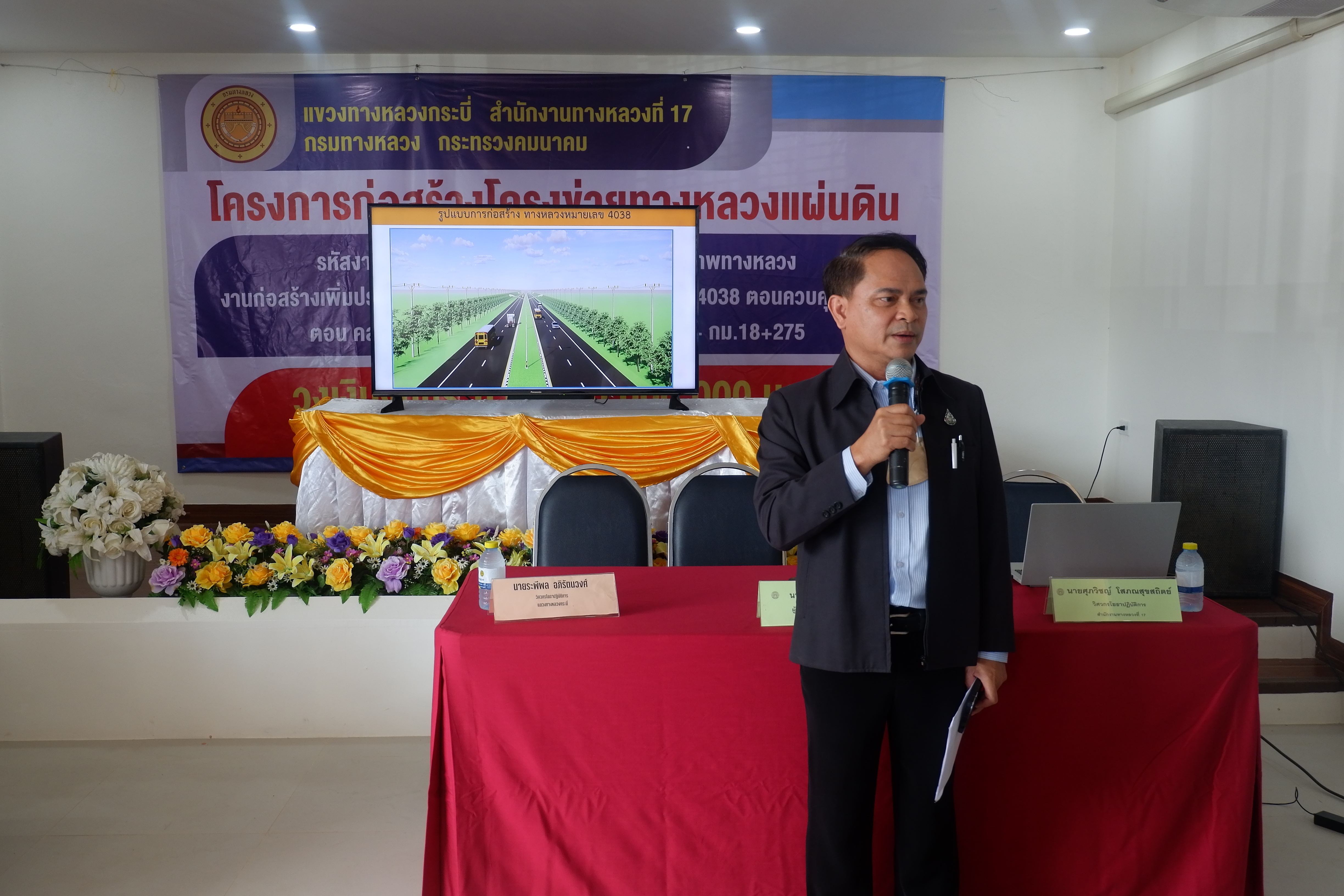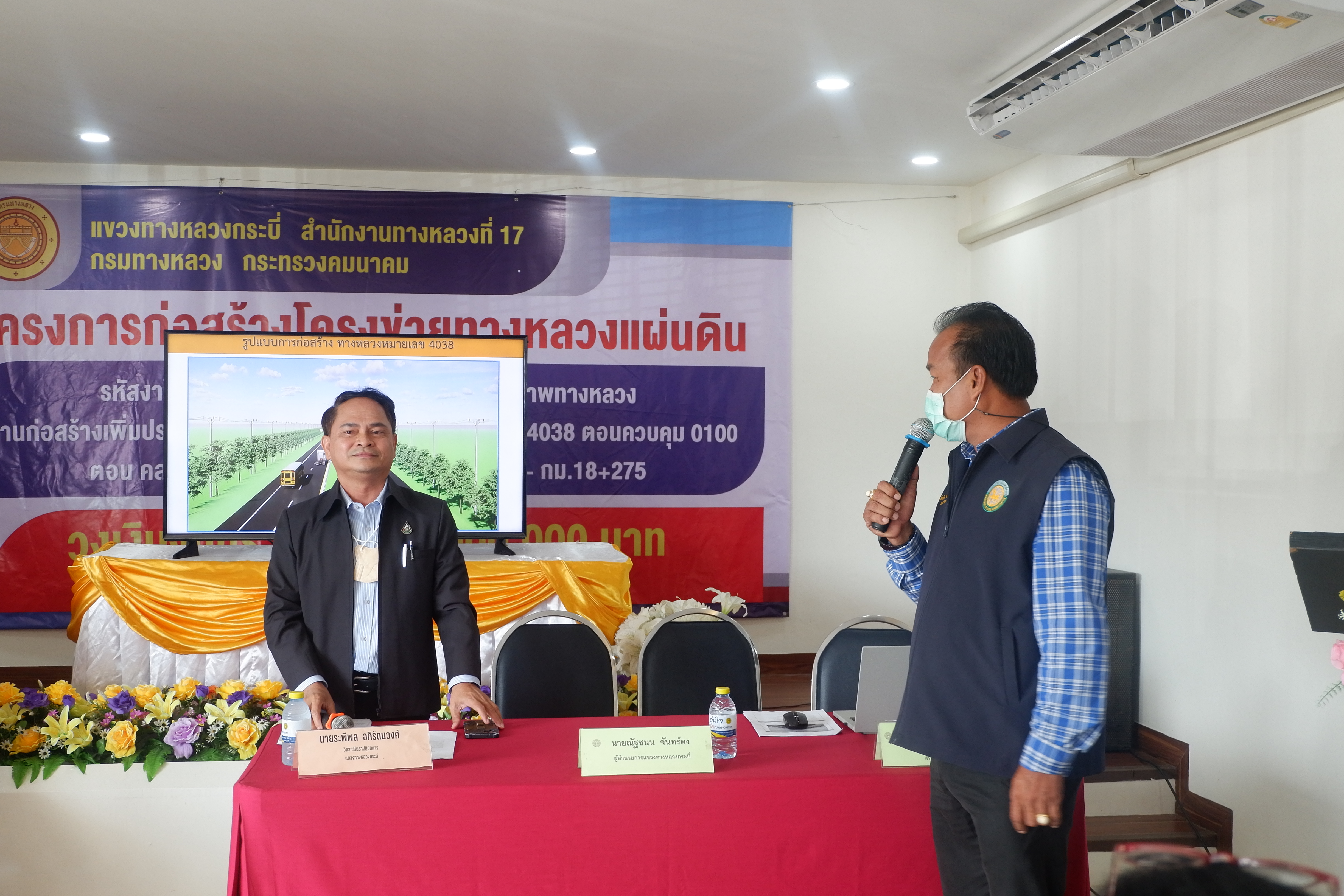 นายณัฐชนน จันทร์คง ผู้อำนวยการแขวงทางหลวงกระบี่ ดำเนินการจัดประชุมโครงการการมีส่วนร่วมของประชาชน โครงการก่อสร้างเครือข่ายทางหลวงแผ่นดิน รหัสงาน 12100 กิจกรรมก่อสร้างเพิ่มประสิทธิภาพทางหลวง ทางหลวงหมายเลข 4039 ตอนควบคุม 0100 ตอน คลองท่อม-ทุ่งใหญ่ ระหว่าง กม.16+900 - กม.18+381 จุดดำเนินการ 1 แห่ง งบประมาณก่อสร้าง 50,000,000 บาท ในวันอังคาร ที่ 16 สิงหาคม 2565 เวลา 09.00 น. – 12.00 น. ณ องค์การบริหารส่วนตำบลพรุดินนา ตำบลพรุดินนา อำเภอคลองท่อม จังหวัดกระบี่