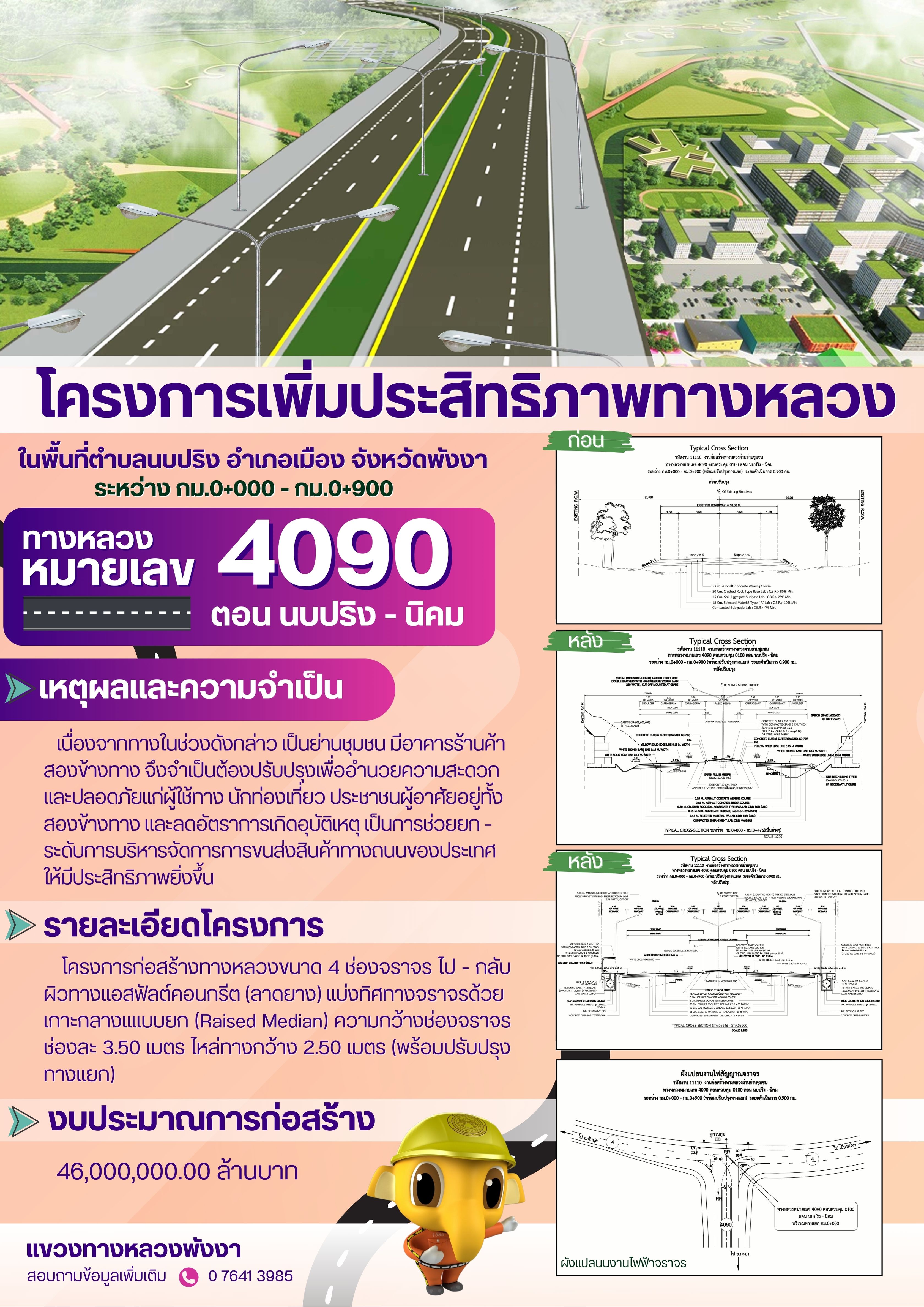 โครงการก่อสร้างทางหลวงหมายเลข 4090 ตอน นบปริง - นิคม ระหว่าง กม.0+000 - 0+900 ระยะทางยาวประมาณ 0.900 กิโลเมตร