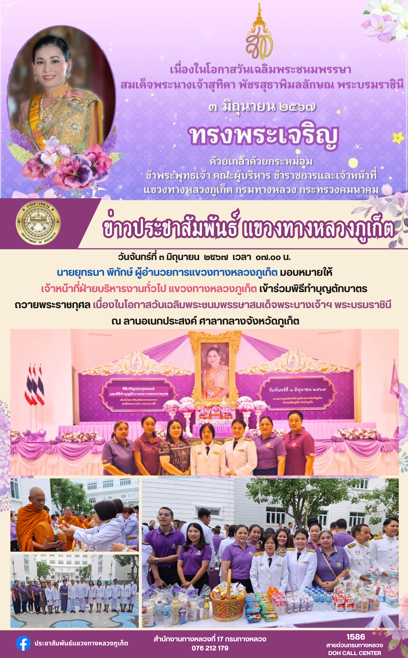 4 05/06/2567 เข้าร่วมพิธีทำบุญตักบาตรถวายพระราชกุศล เนื่องในโอกาสวันเฉลิมพระชนมพรรษาสมเด็จพระนางเจ้าฯ พระบรมราชินี ณ ลานอเนกประสงค์ ศาลากลางจังหวัดภูเก็ต