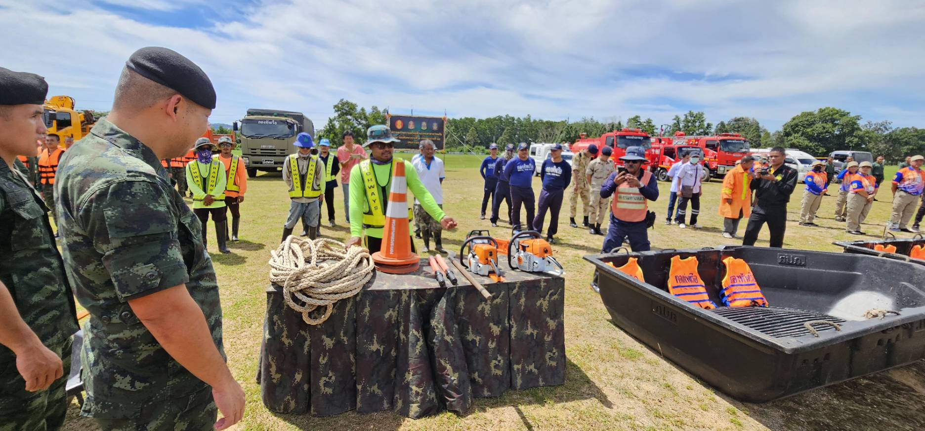 เตรียมความพร้อมซักซ้อมแผนบรรเทาสาธารณภัย ร่วมกับหน่วยงานด้านบรรเทาสาธารภัยในจังหวัดระนอง