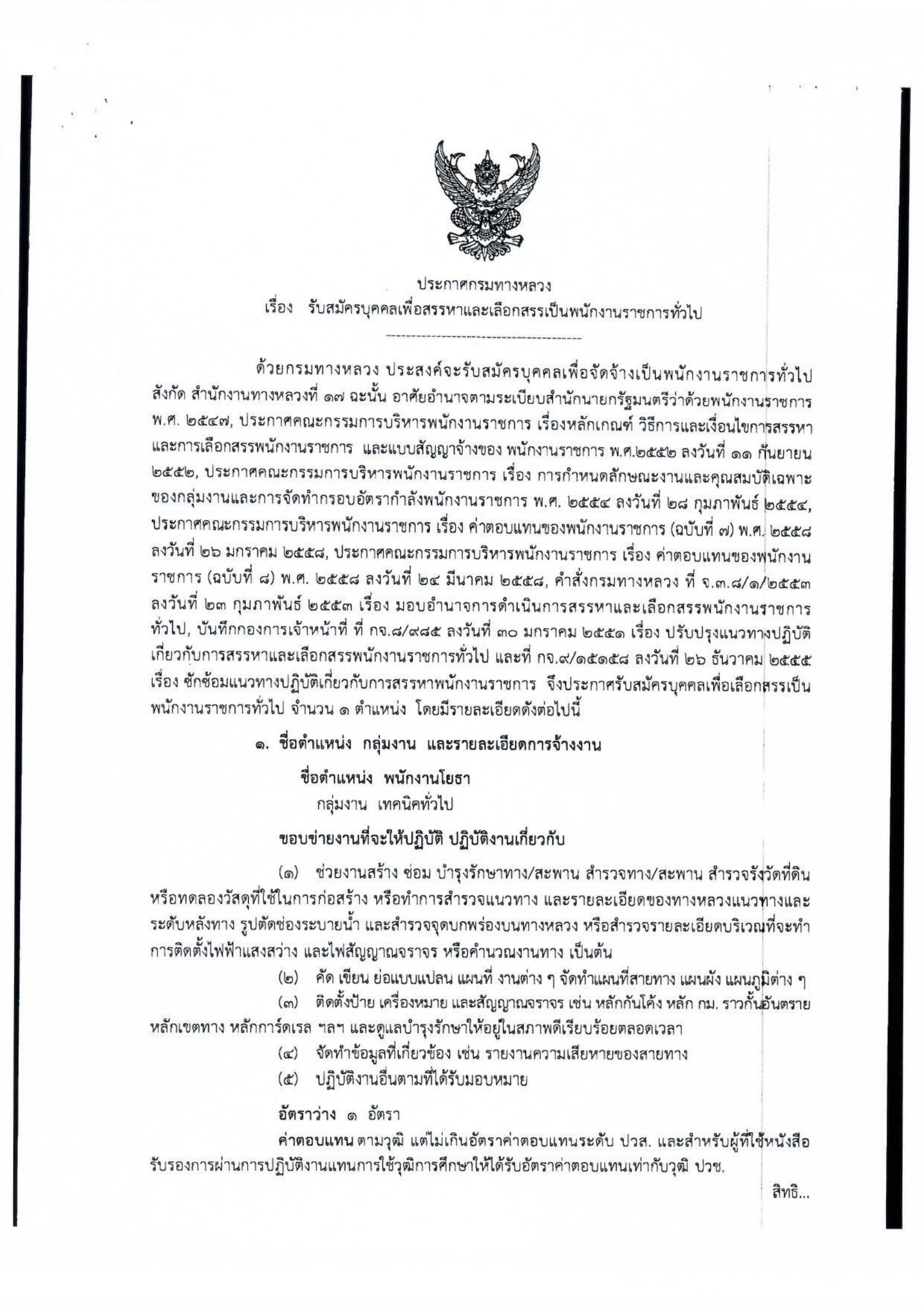 ประกาศรับสมัครบุคคลเพื่อสรรหาและเลือกสรรเป็นพนักงานราชการทั่วไป ตำแหน่ง พนักงานโยธา