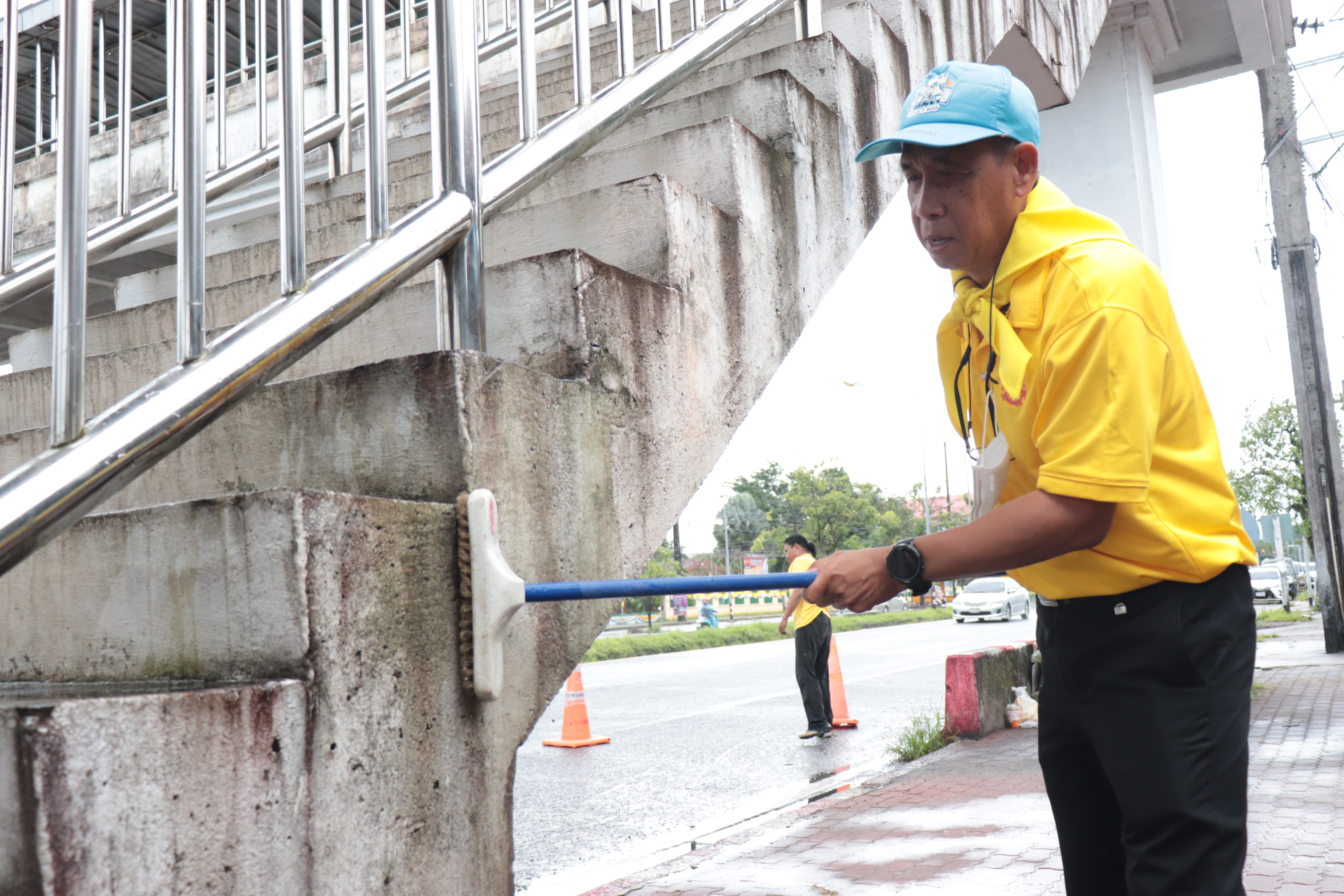 โดยร่วมกันทำความสะอาดสะพานลอย และทาสีเสาไฟฟ้าแสงสว่าง บนทางหลวงหมายเลข 4