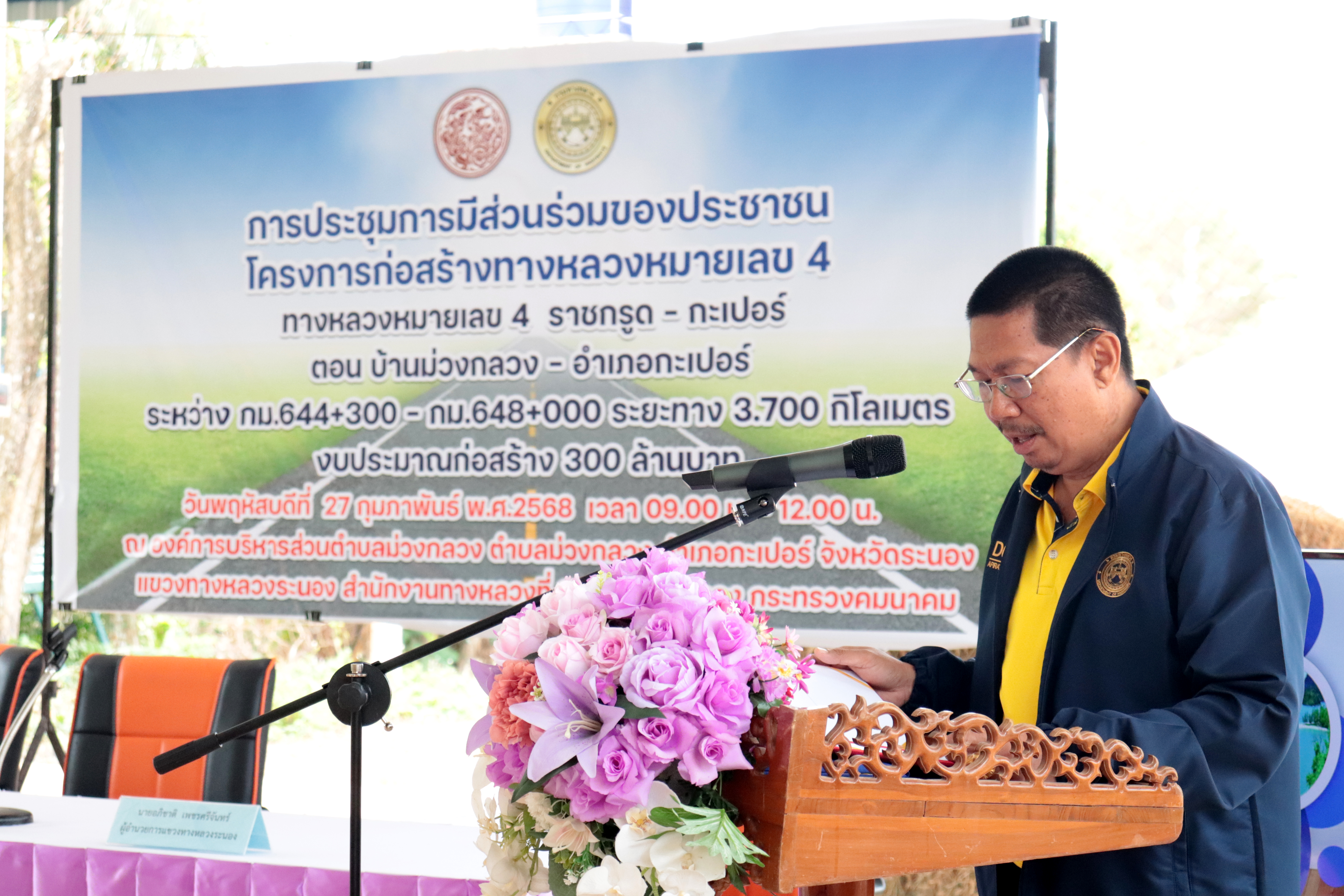 ประชุมการมีส่วนร่วมของประชาชน โครงการก่อสร้างทางหลวงหมายเลข 4 ราชกรูด - กะเปอร์ ตอน บ้านม่วงกลวง - อำเภอกะเปอร์ ระหว่าง กม.644+300 - กม.648+000