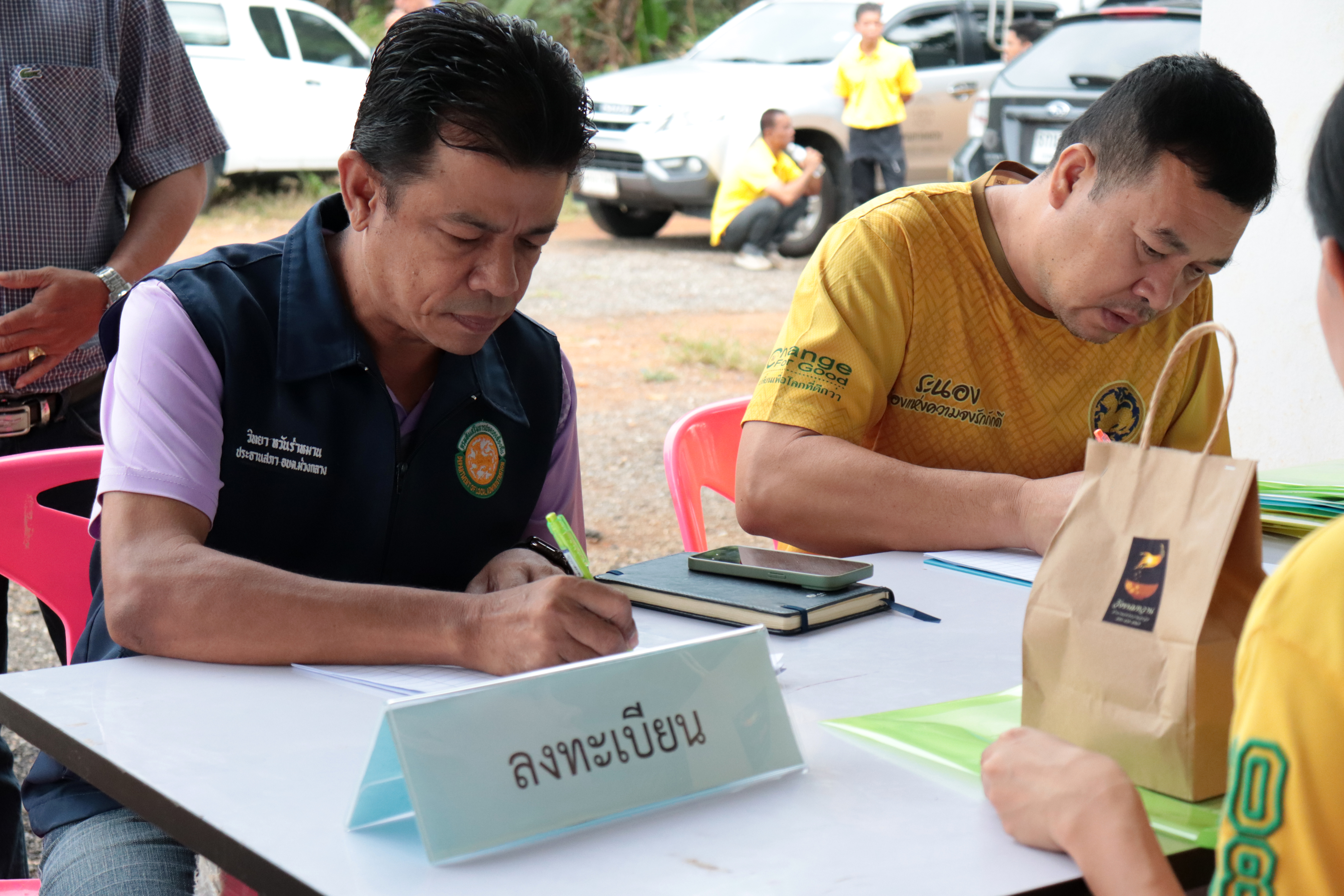 นายปฏิวัติ ทวีทรัพย์ หัวหน้าหมวดทางหลวงกะเปอร์ นายโชคชัย แสนทวี นายช่างโยธาอาวุโส