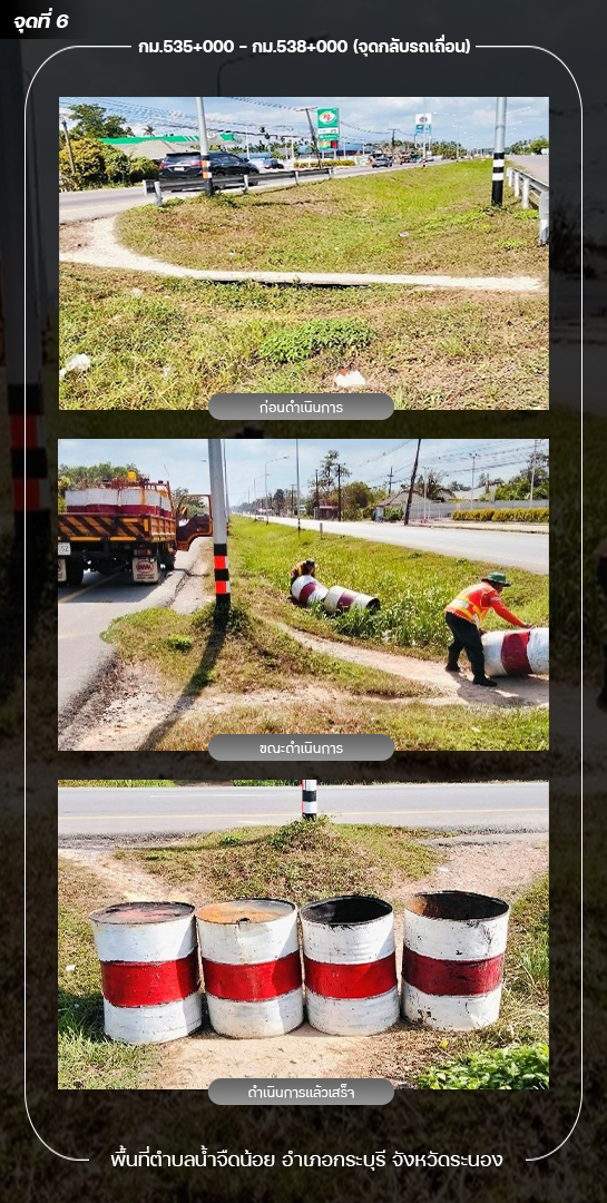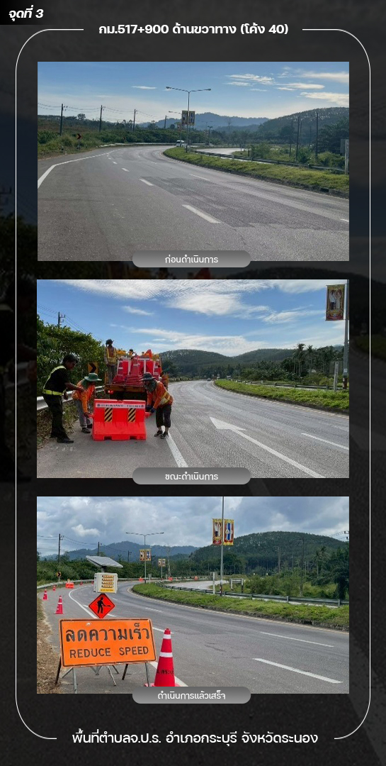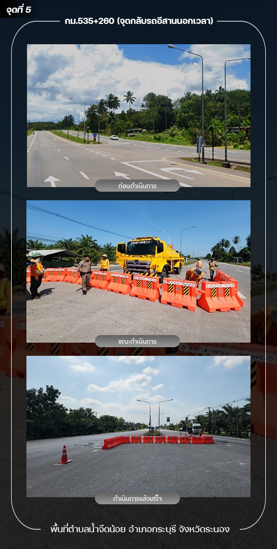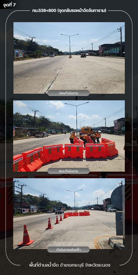 กู้ชีพกู้ภัย และเจ้าหน้าที่ในสังกัดฯ ดำเนินการปิดจุดกลับรถ และติดตั้งอุปกรณ์อำนวยความปลอดภัยบริเวณจุดเสี่ยง