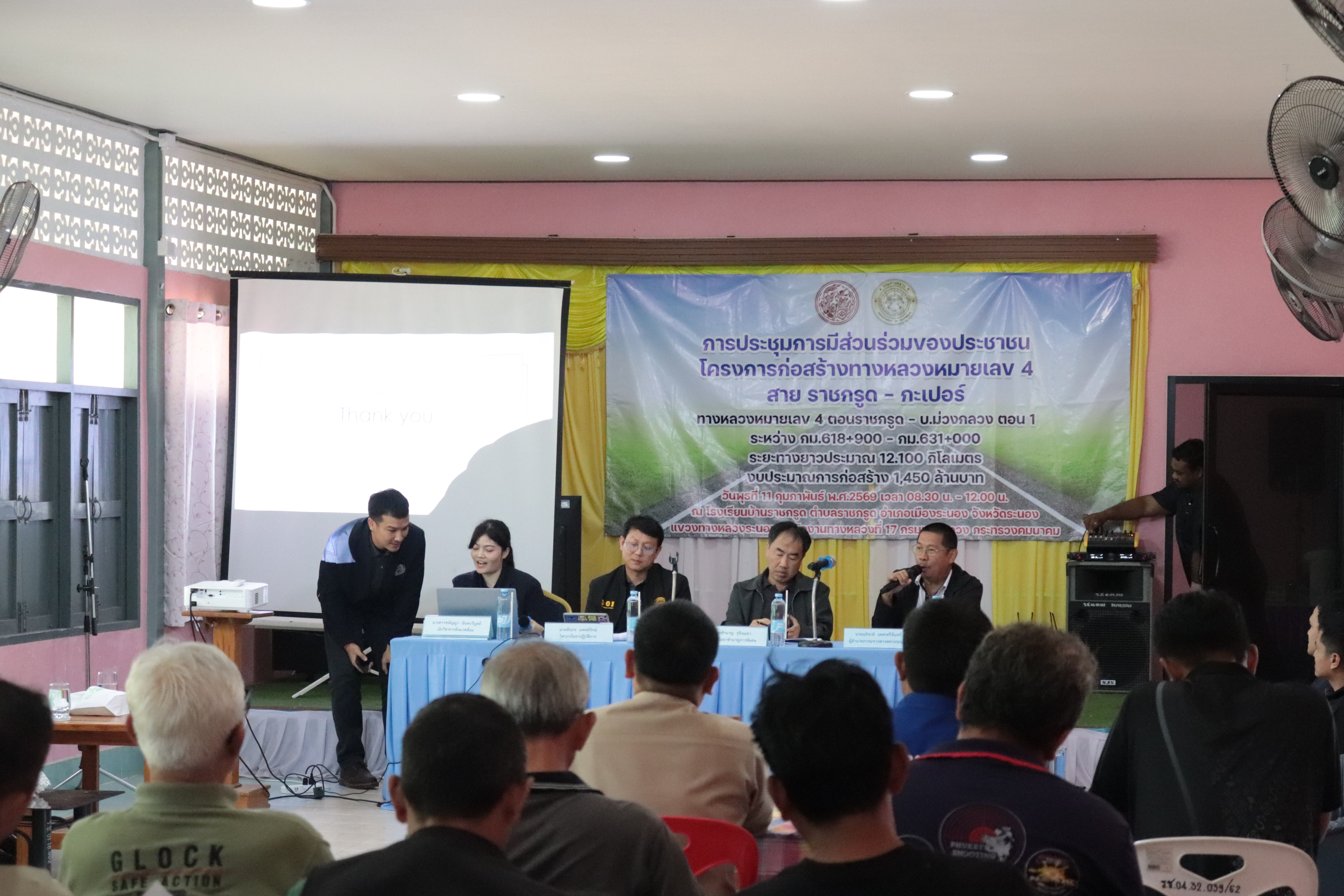 แขวงทางหลวงระนอง ดำเนินการประชุมการมีส่วนร่วมของประชาชน โครงการก่อสร้างขยาย 4 ช่องจราจร บนทางหลวงหมายเลข 4 สาย ราชกรูด - กะเปอร์ ตอน ราชกรูด - บ.ม่วงกลวง ตอน 1 ระหว่าง กม.618+900 - กม.631+000 และ ตอน 2 ระหว่าง กม.634+500 - กม.644+300