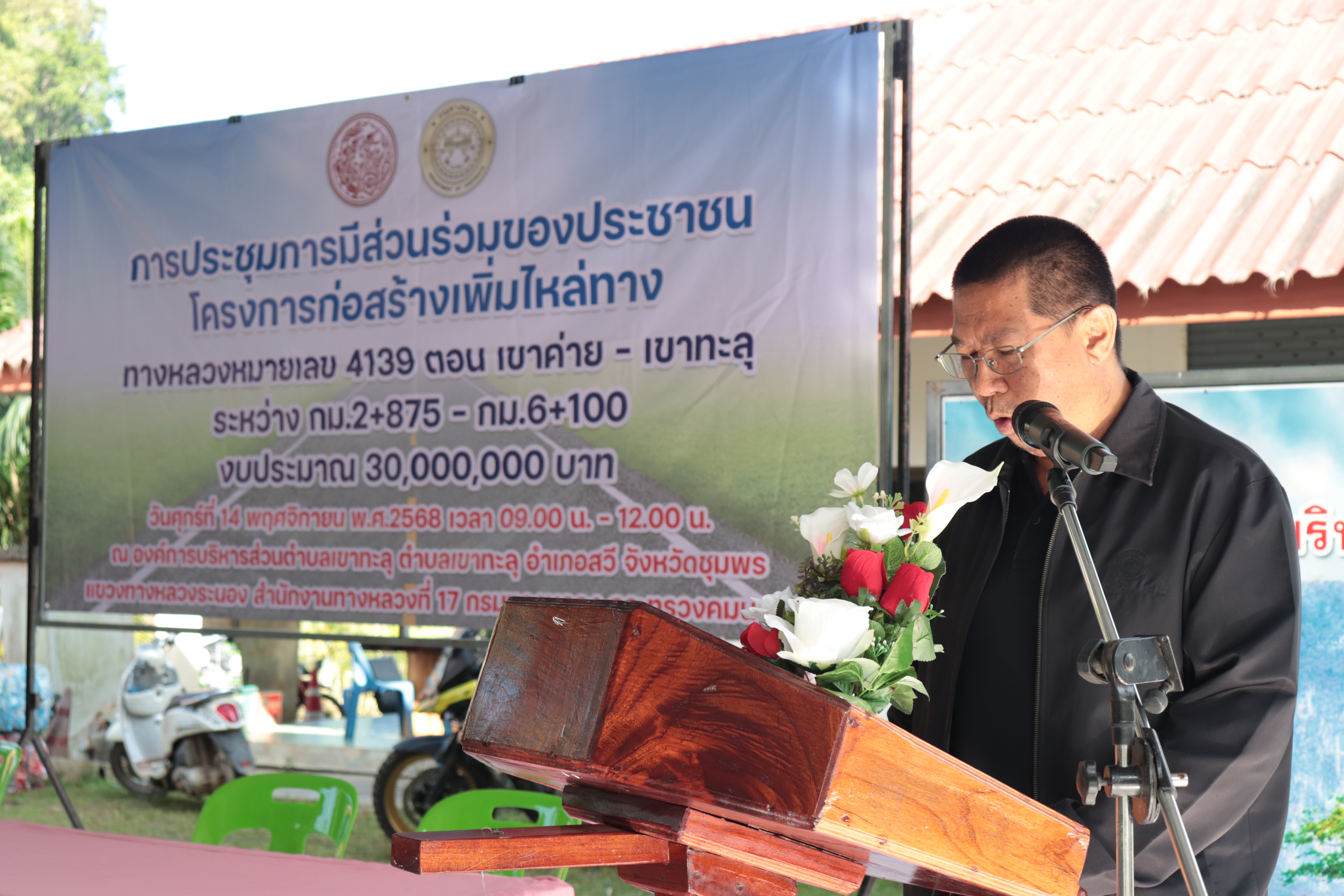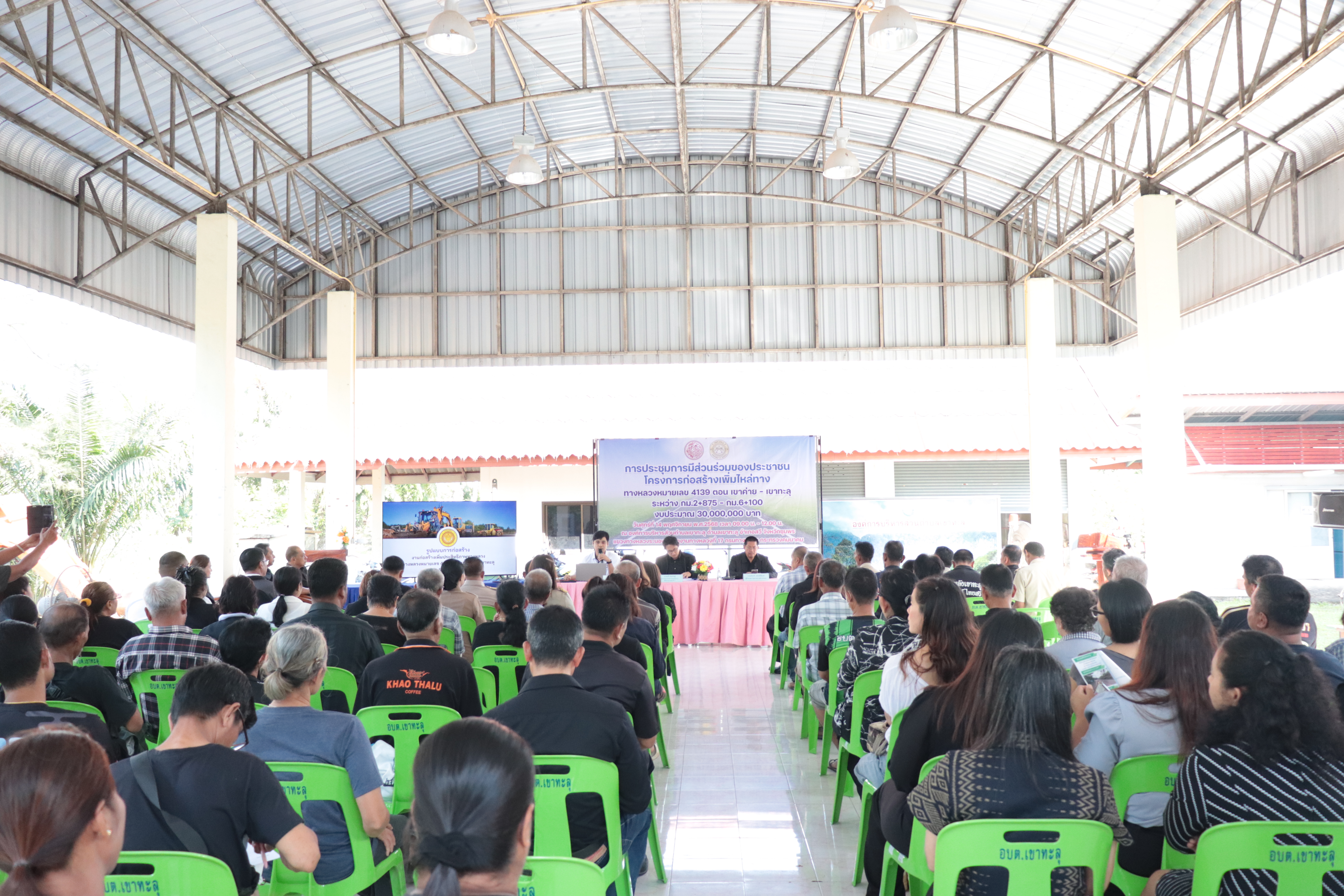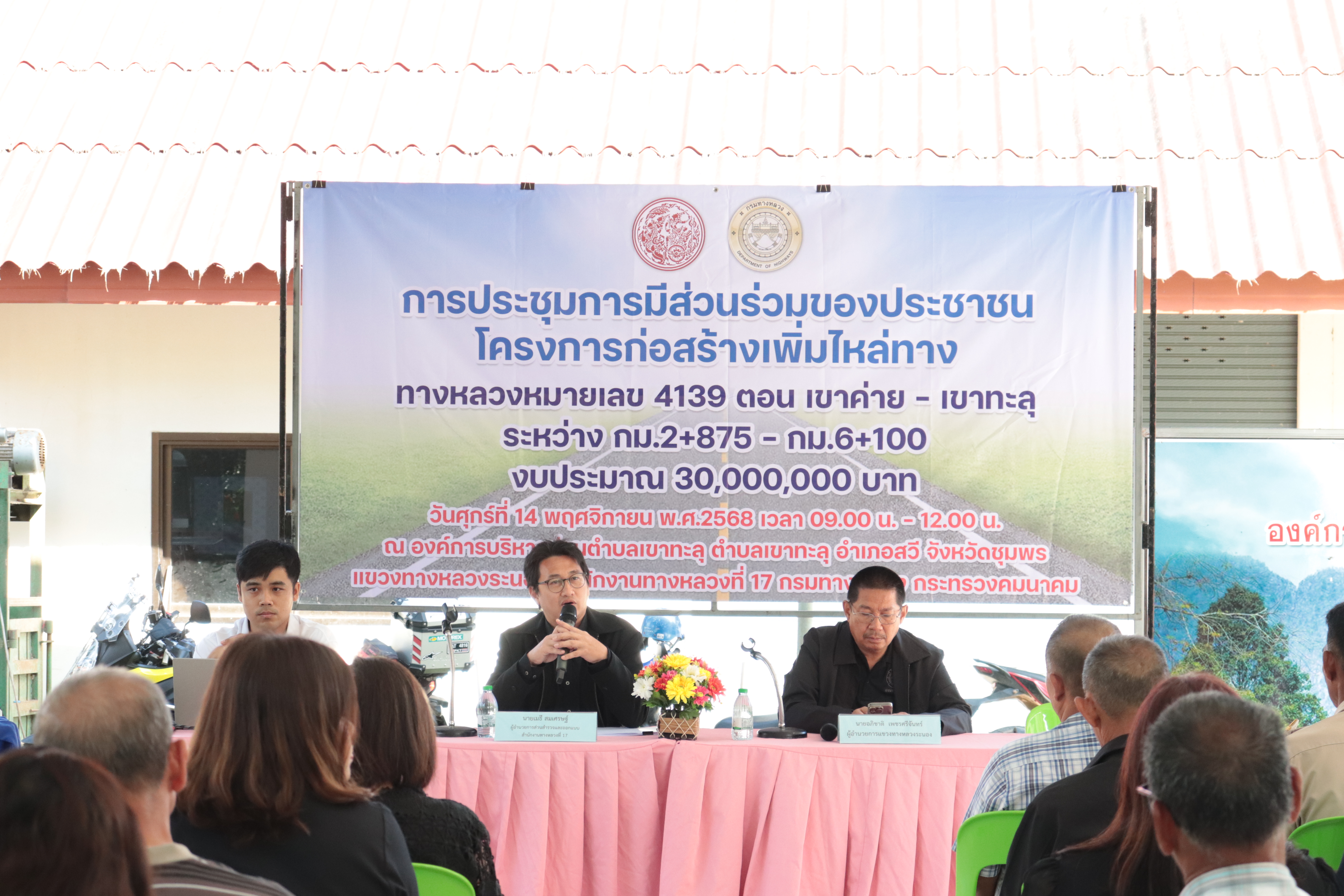 แขวงทางหลวงระนอง ดำเนินการประชุมการมีส่วนร่วมของประชาชน โครงการก่อสร้างเพิ่มประสิทธิภาพทางหลวง ทางหลวงหมายเลข 4139 ตอน เขาค่าย - เขาทะลุ ระหว่าง กม.2+875 - กม.6+100