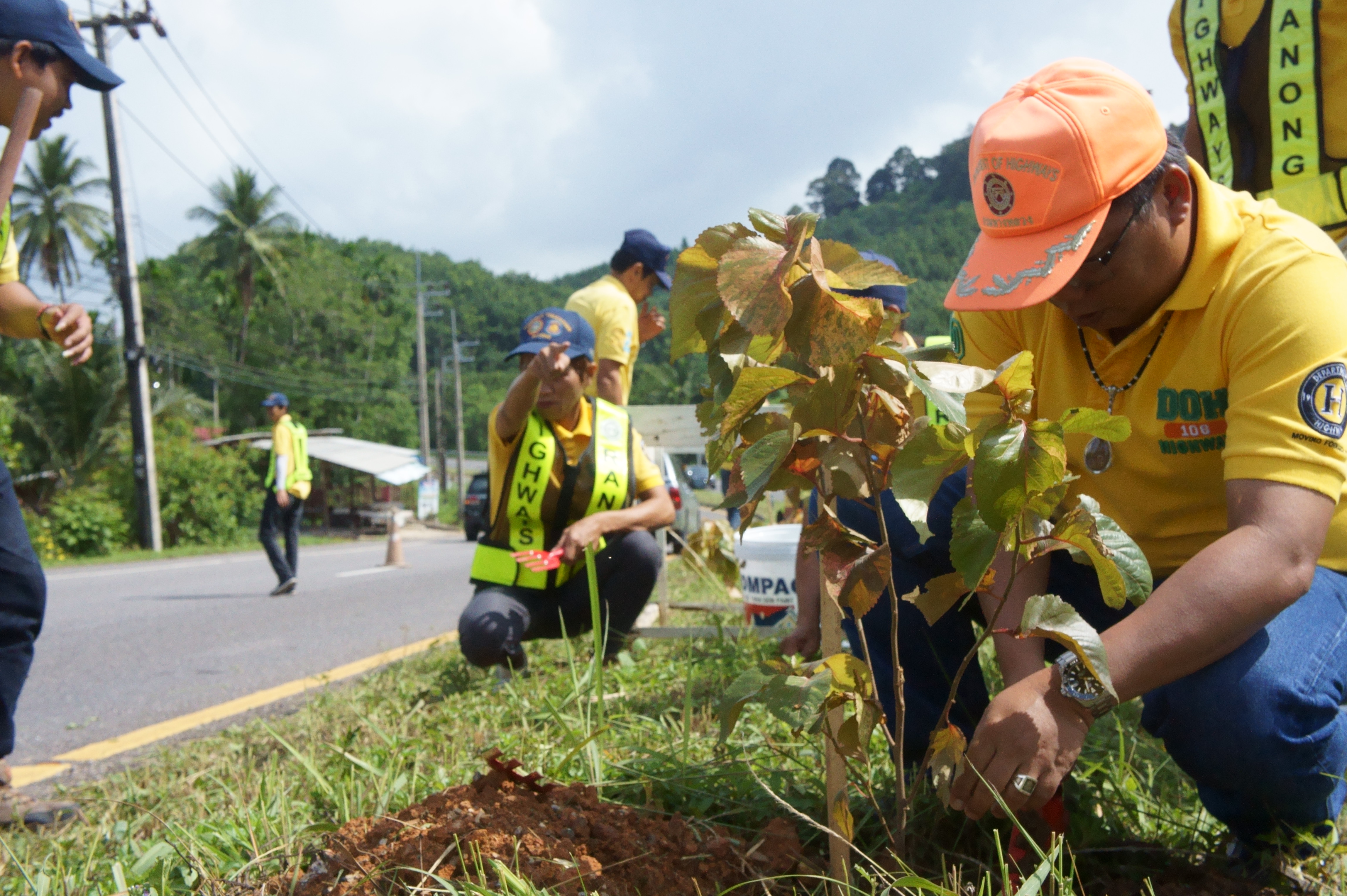 โดยร่วมกันปลูกต้นไม้ บนทางหลวงหมายเลข 4