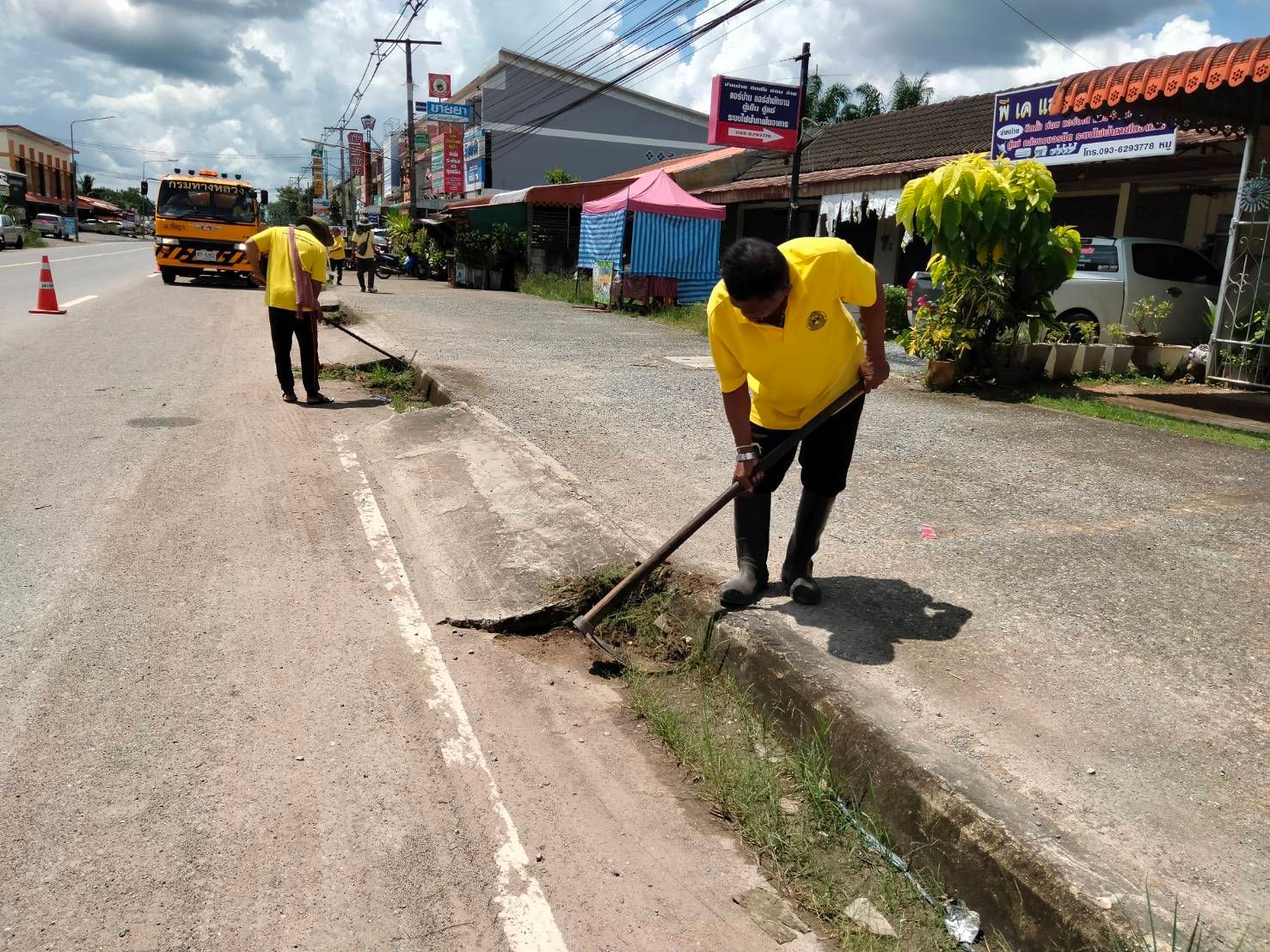 จิตอาสาทำความสะอาดช่องระบายน้ำและทำความสะอาดผิวทาง |
