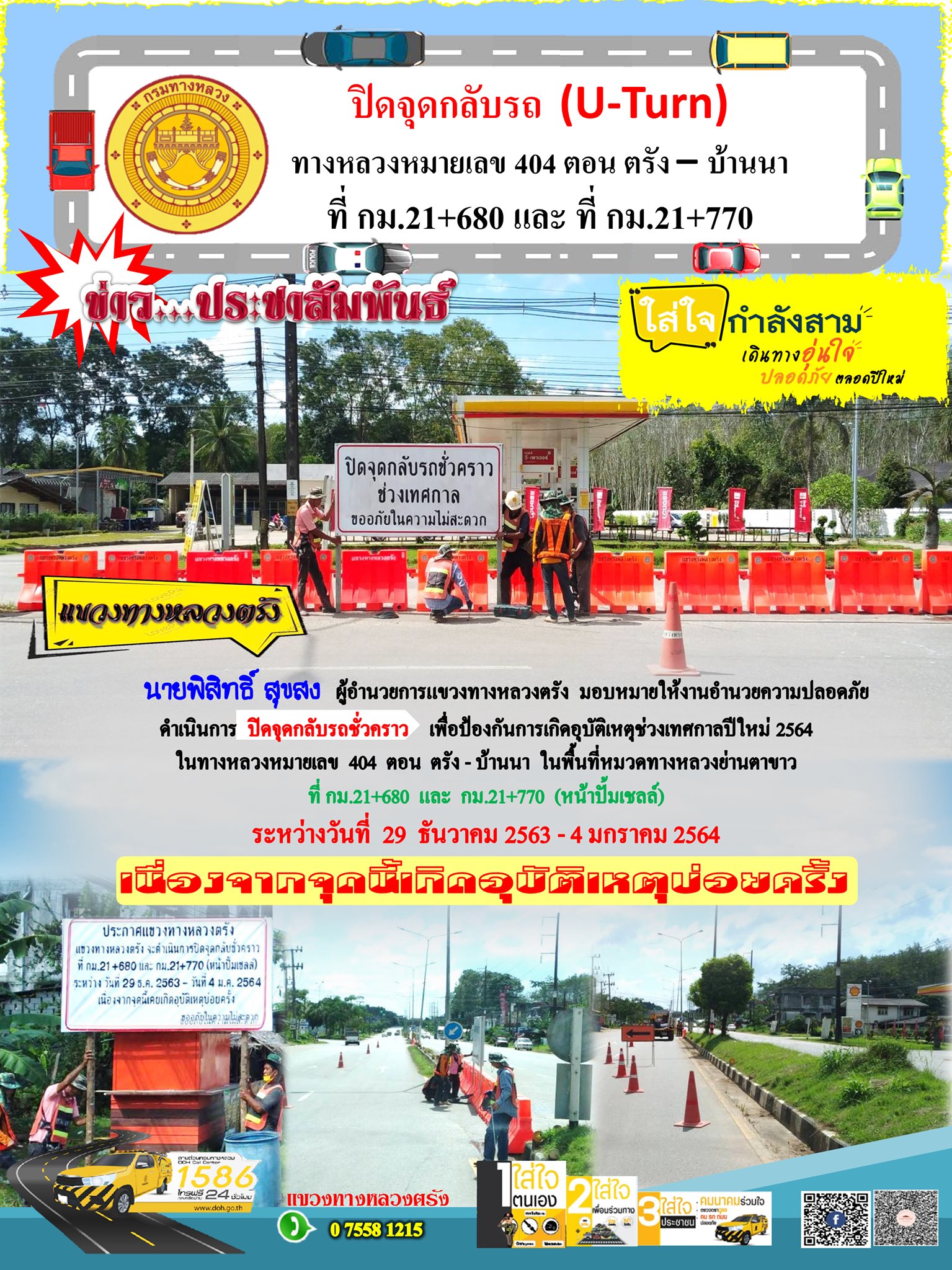 ปิดจุดกลับรถชั่วคราว ในช่วงเทศกาลสงกรานต์ 2564 |