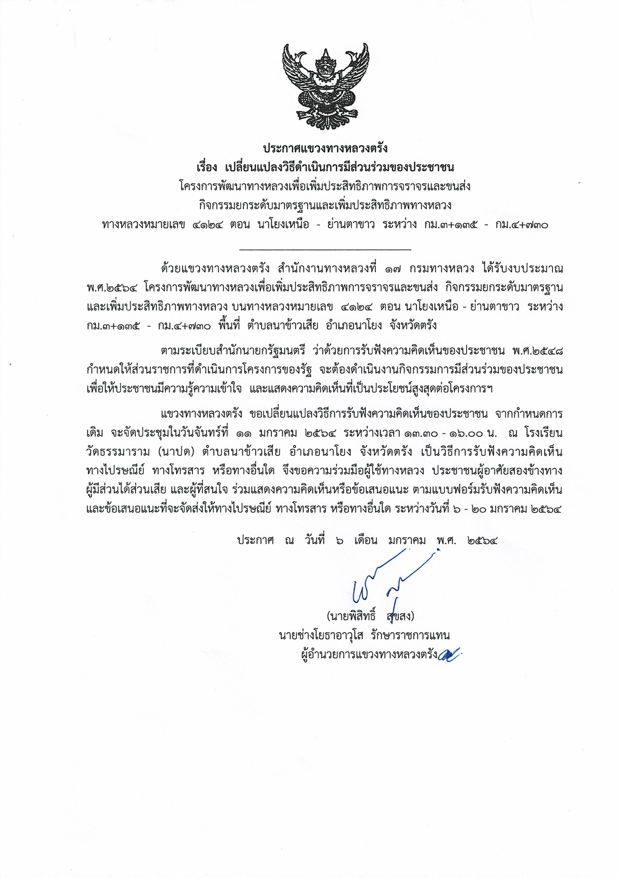 ประกาศเปลี่ยนแปลงวิธีการดำเนินการมีส่วนร่วมฯ |