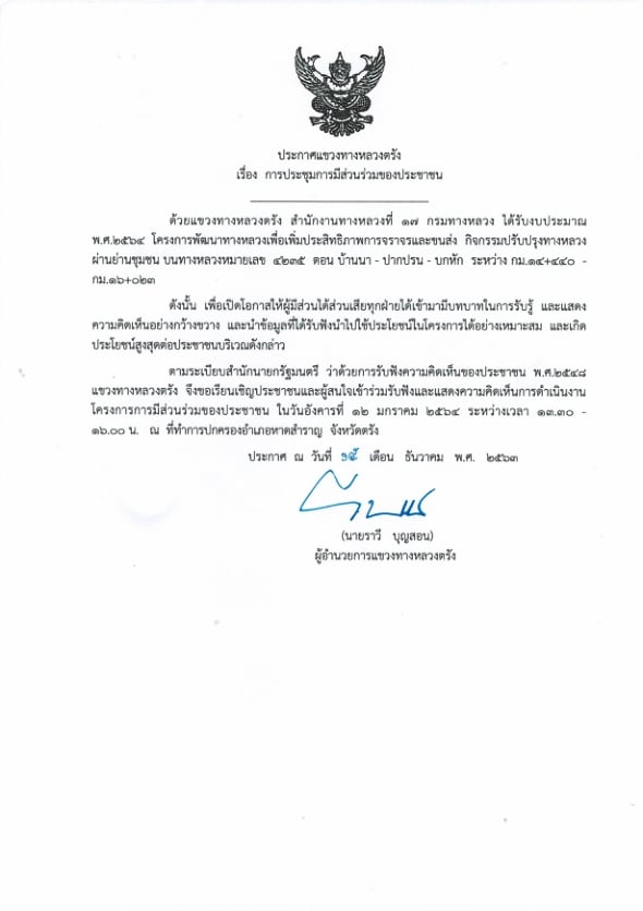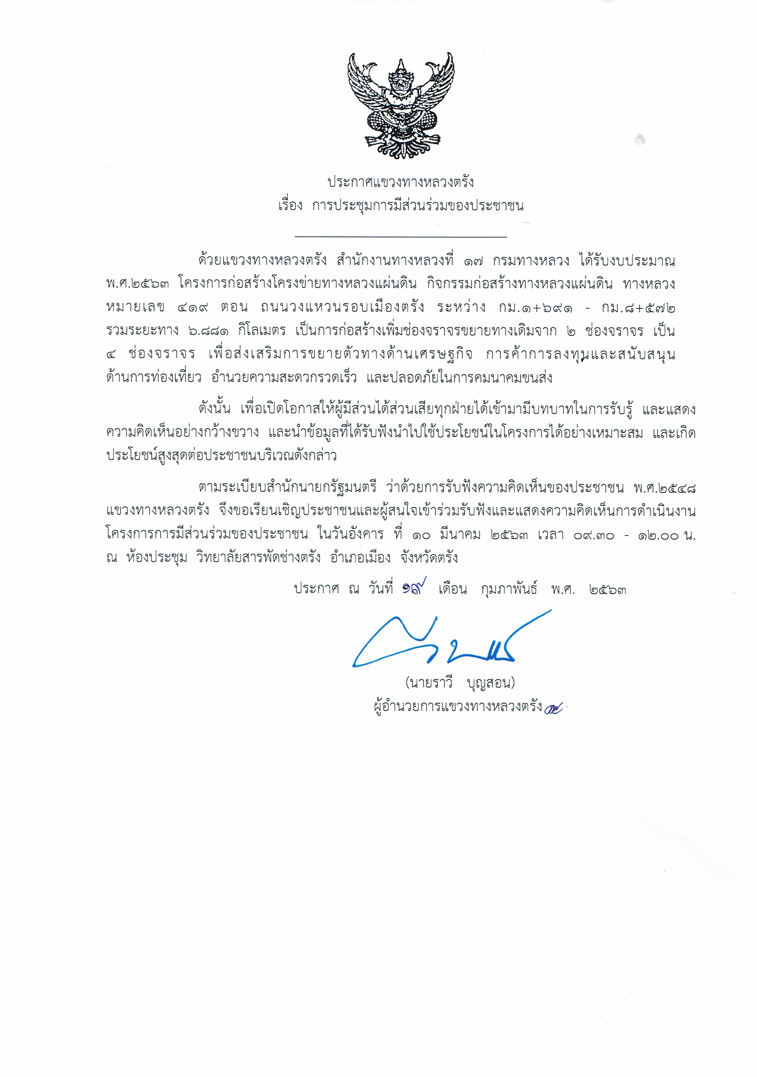 98 02/03/2563 ขอเชิญเข้าร่วมประชุมการมีส่วนร่วมรับฟังความคิดเห็นของประชาชน