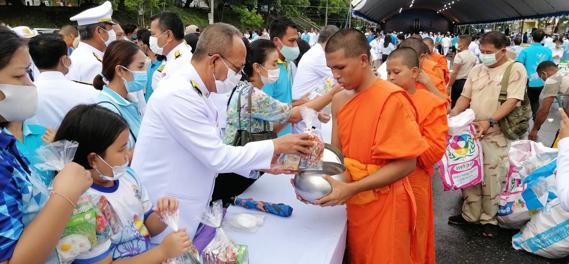 97 12/08/2563 ร่วมทำบุญตักบาตรถวายพระราชกุศล และลงนามถวายพระพรชัยมงคล