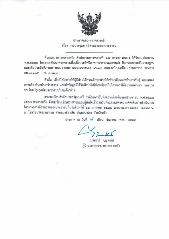 92 15/12/2563 ขอเชิญเข้าร่วมประชุมการมีส่วนร่วม