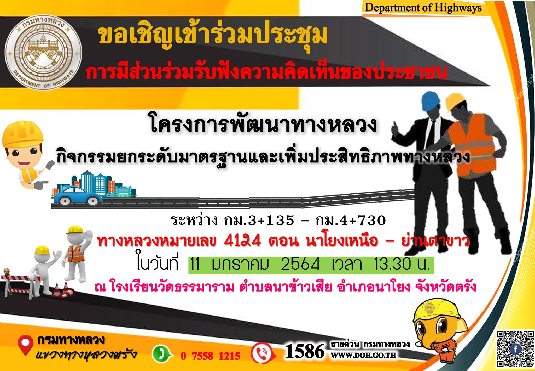 โครงการพัฒนาทางหลวงเพื่อเพิ่มประสิทธิภาพการจราจรและขนส่ง กิจกรรมปรับปรุงทางหลวงผ่านย่านขุมขน ทางหลวงหมายเลข 4124 ตอน นาโยงเหนือ - ย่านตาขาว ระหว่าง กม.3+135 - กม.4+730