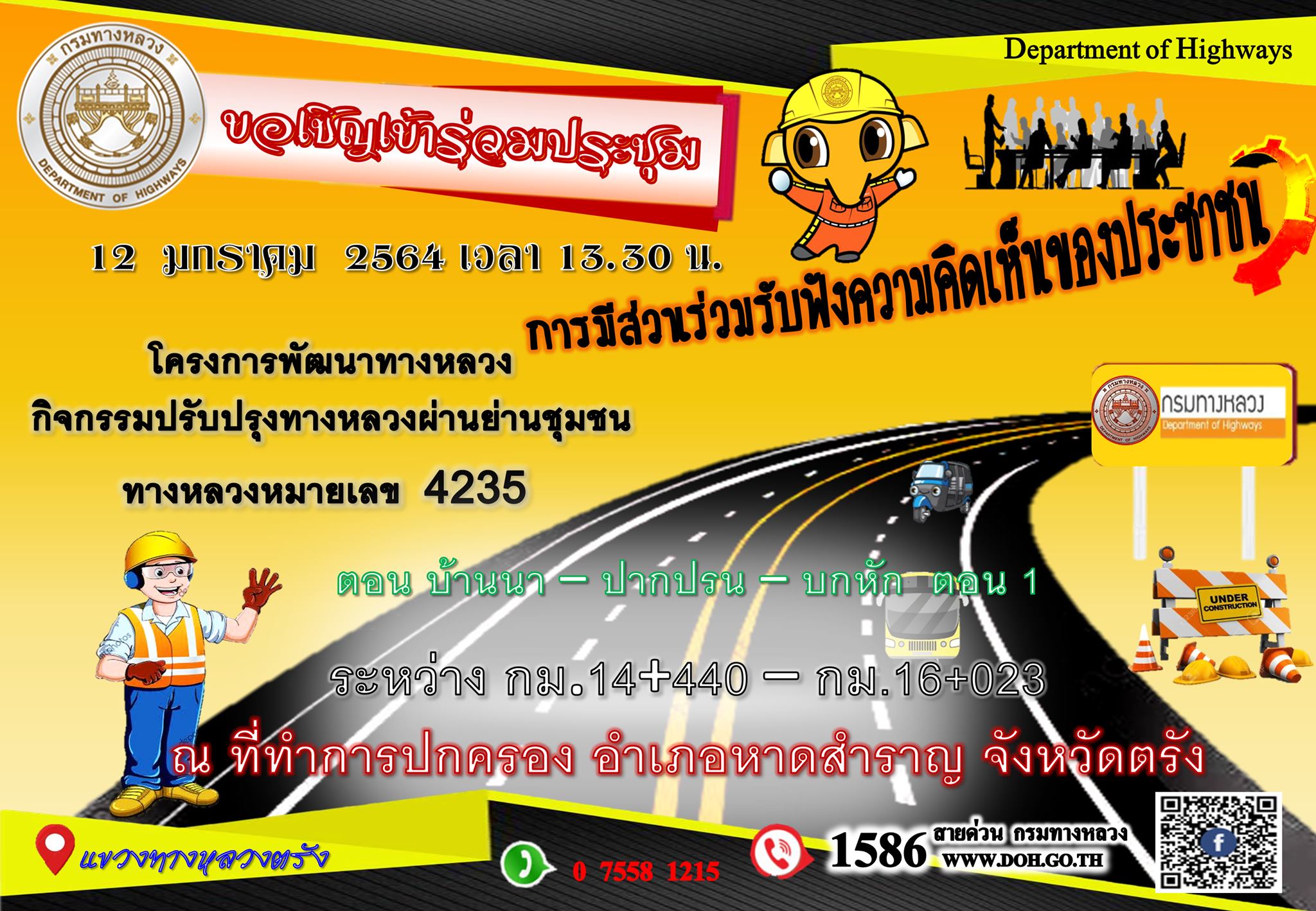 โครงการพัฒนาทางหลวงเพื่อเพิ่มประสิทธิภาพการจราจรและขนส่ง กิจกรรมปรับปรุงทางหลวงผ่านย่านชุมชน ทางหลวงหมายเลข 4235 ตอน บ้านนา - ปากปรน - บกหัก ระหว่าง กม.14+440 - กม.16+023