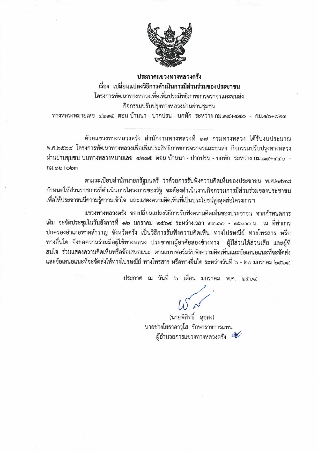 ประกาศเปลี่ยนแปลงวิธีการดำเนินการมีส่วนร่วมฯ