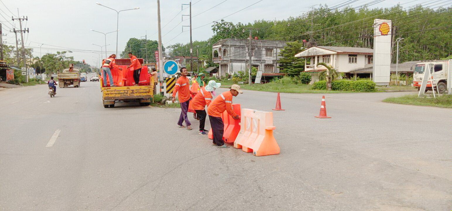 แขวงทางหลวงตรัง ดำเนินการปิดจุดกลับรถชั่วคราว