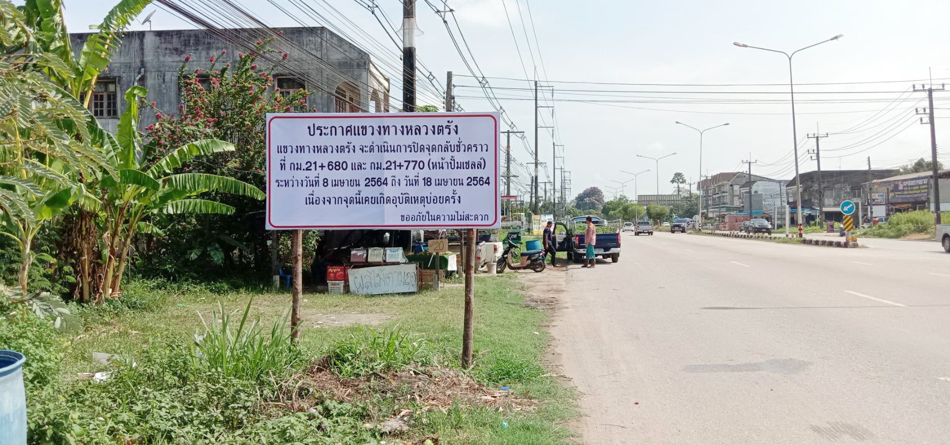 ทางหลวงหมายเลข 404 ตอน ตรัง - บ้านนา ที่ กม.21+680 และ ที่ กม.21+770 (หน้าปั้มเชลล์)
