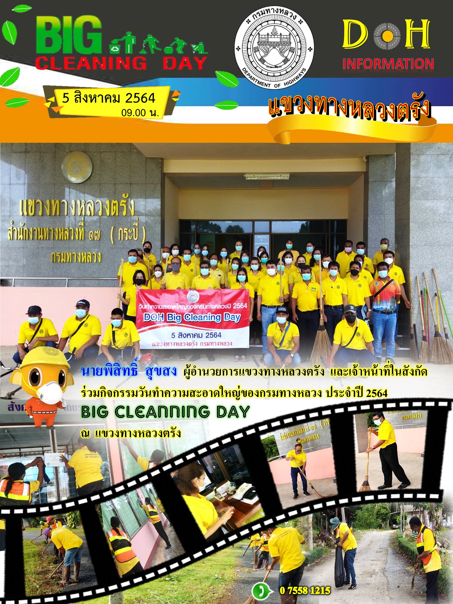 ร่วมกิจกรรม วันทำความสะอาดใหญ่ของกรมทางหลวง ประจำปี 2564 "BIG CLEANNING DAY" ครั้งที่ 2