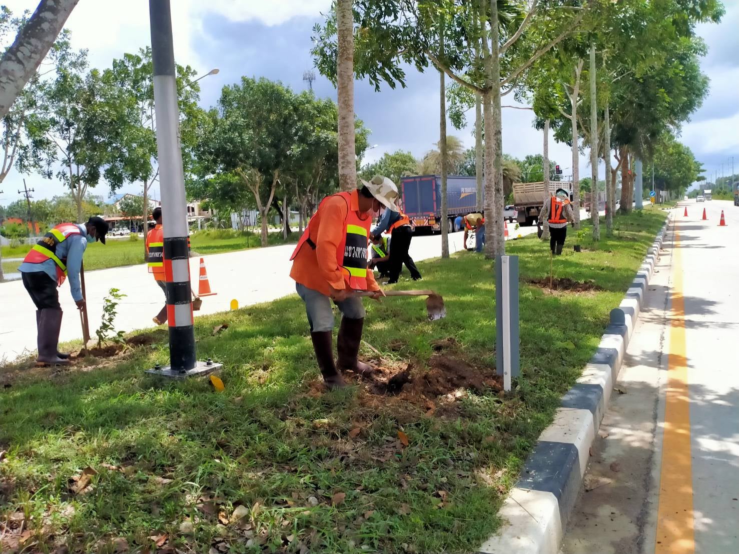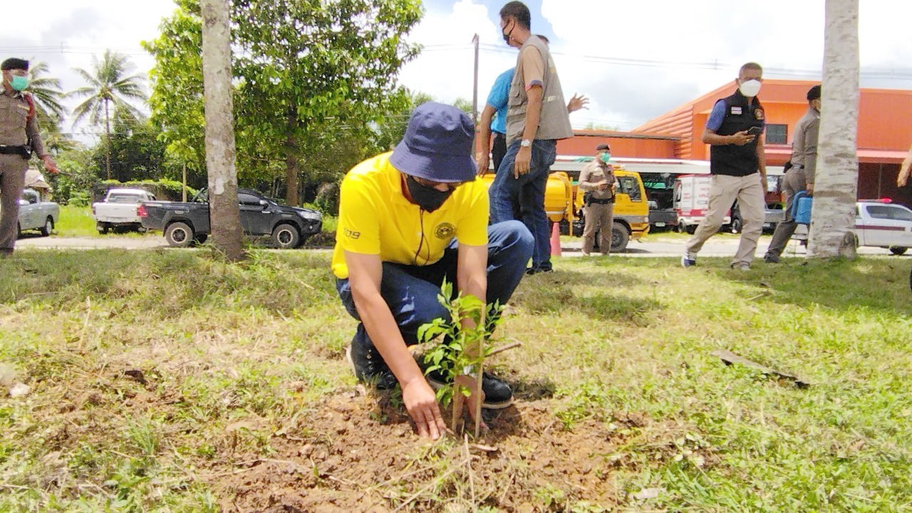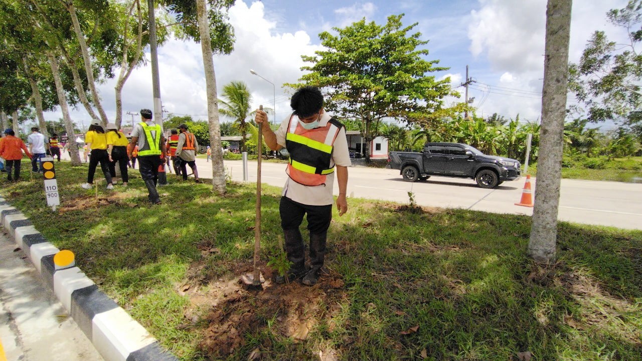 ร่วมปลูกต้นทองอุไร บริเวณเกาะแบ่งถนน ทางหลวงหมายเลข 403 ต้นม่วง - ตรัง ที่ กม.111+000