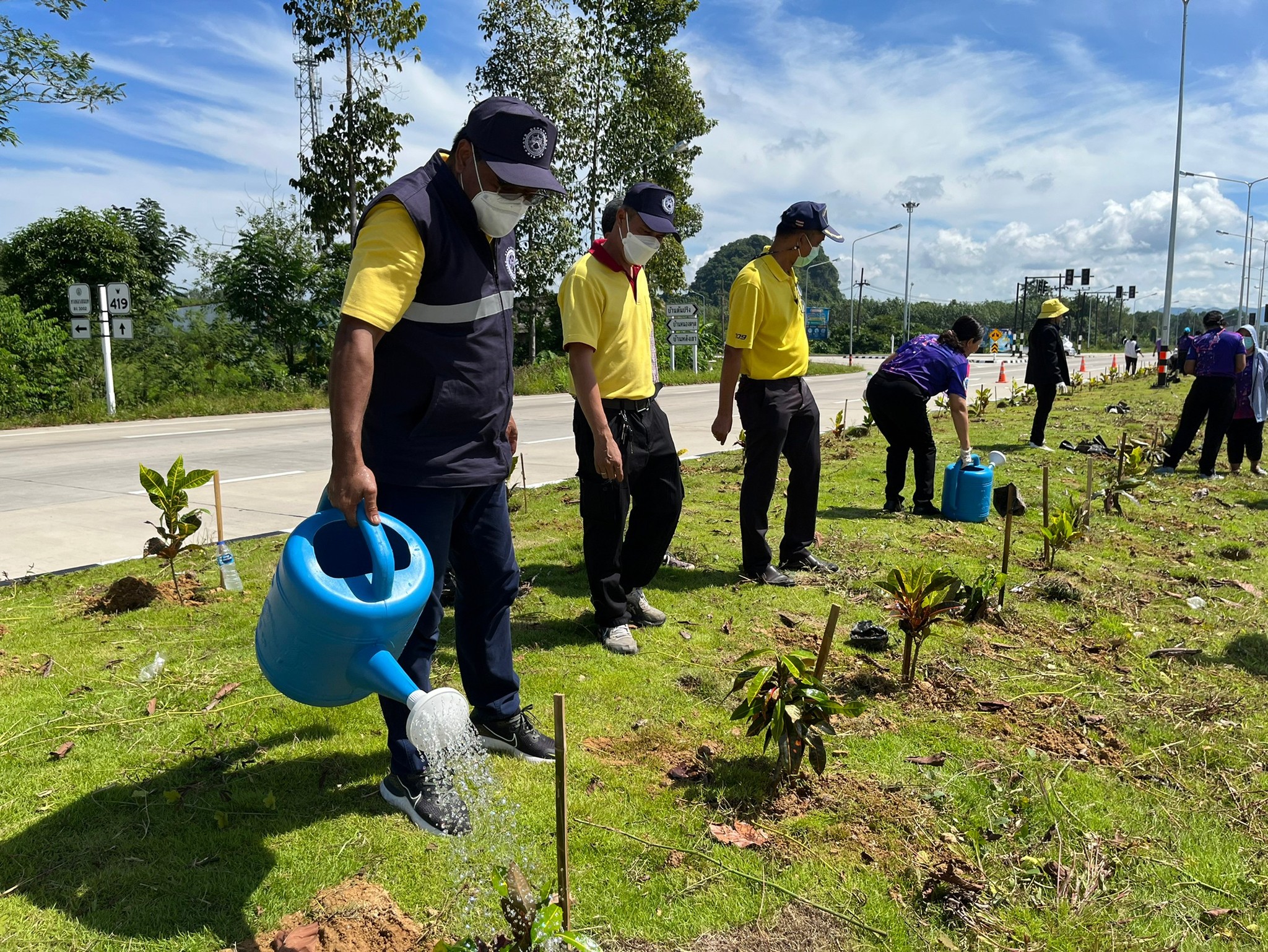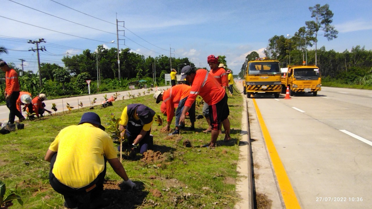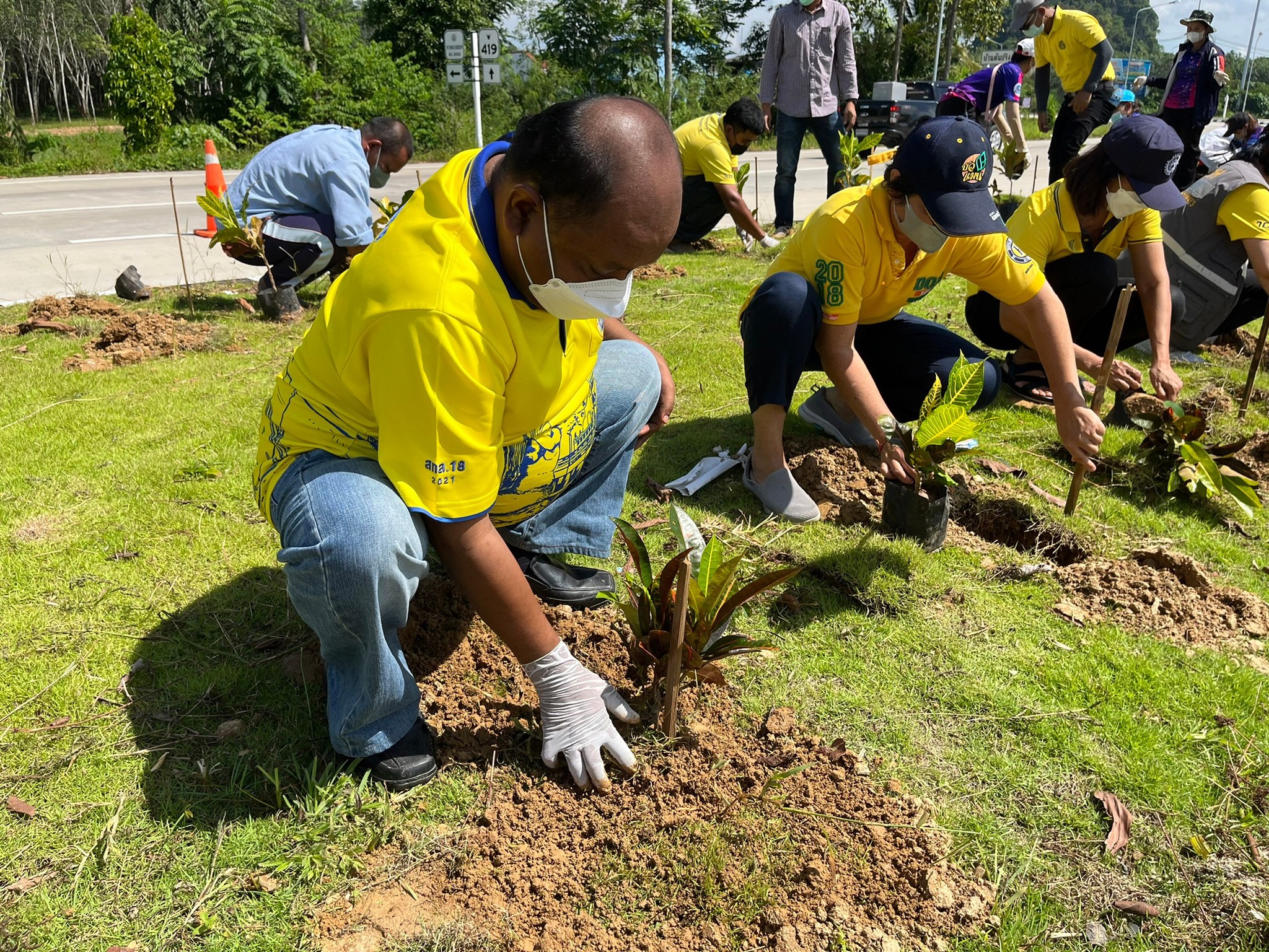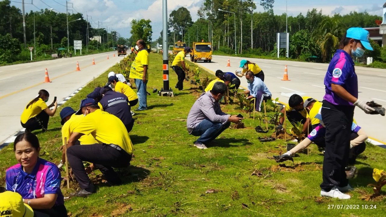 นายพิสิทธิ์ สุขสง ผู้อำนวยการแขวงทางหลวงตรัง พร้อมเจ้าหน้าที่ในสังกัด ร่วมกับ เทศบาลตำบลนาตาล่วง โครงการก่อสร้างทางหลวงหมายเลข 419 ในกิจกรรมโครงการปลูกต้นไม้เฉลิมพระเกียรติพระบาทสมเด็จพระเจ้าอยู่หัว เนื่องในโอกาสวันเฉลิมพระชนมพรรษา 28 กรกฎาคม 2565 ณ บริเวณเกาะกลาง สี่แยกหนองตรุด บนทางหลวงหมายเลข 419 ตอน ถนนวงแหวนรอบเมืองตรัง ที่ กม.2+900