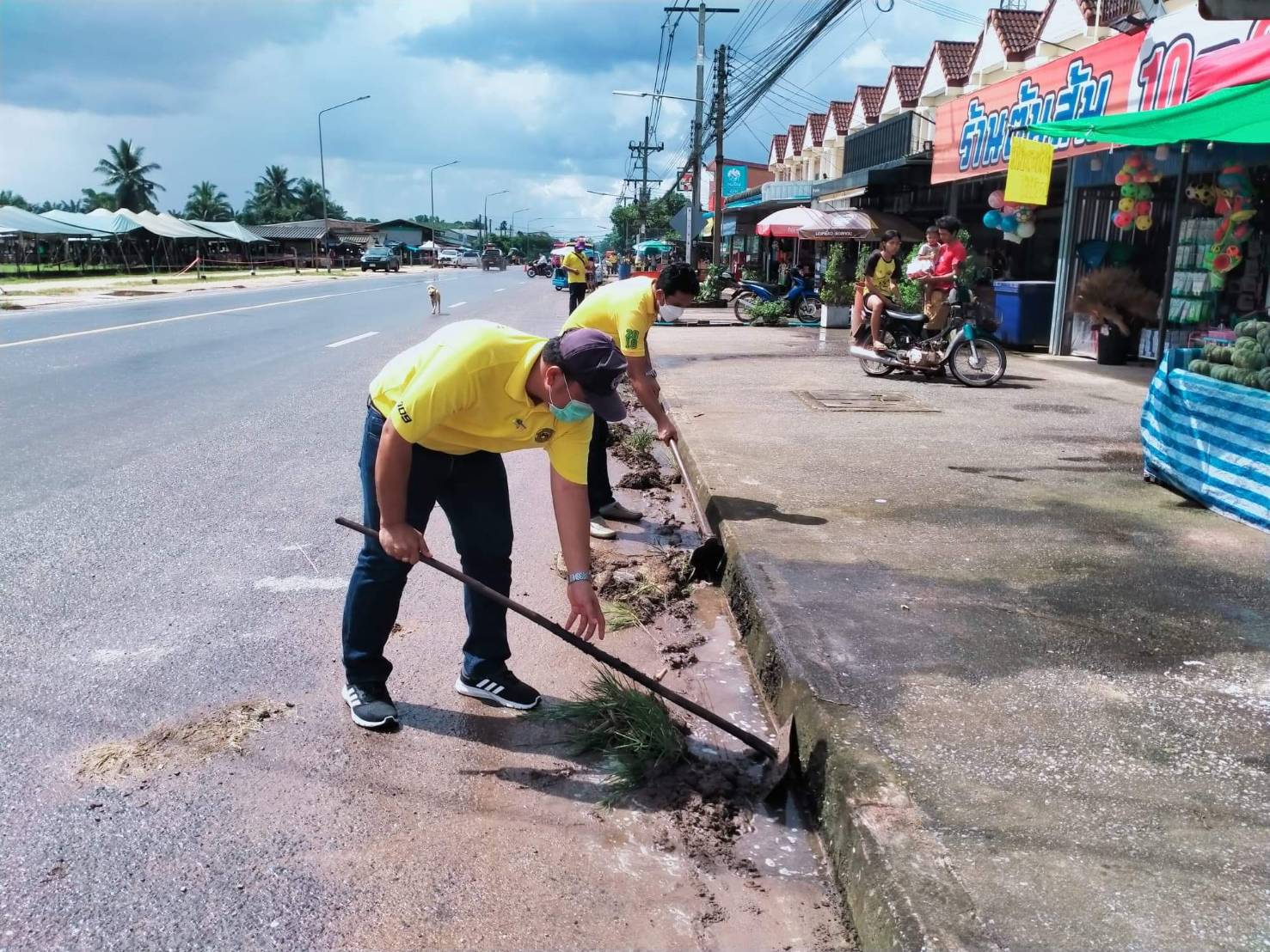จิตอาสาทำความสะอาดช่องระบายน้ำและทำความสะอาดผิวทาง