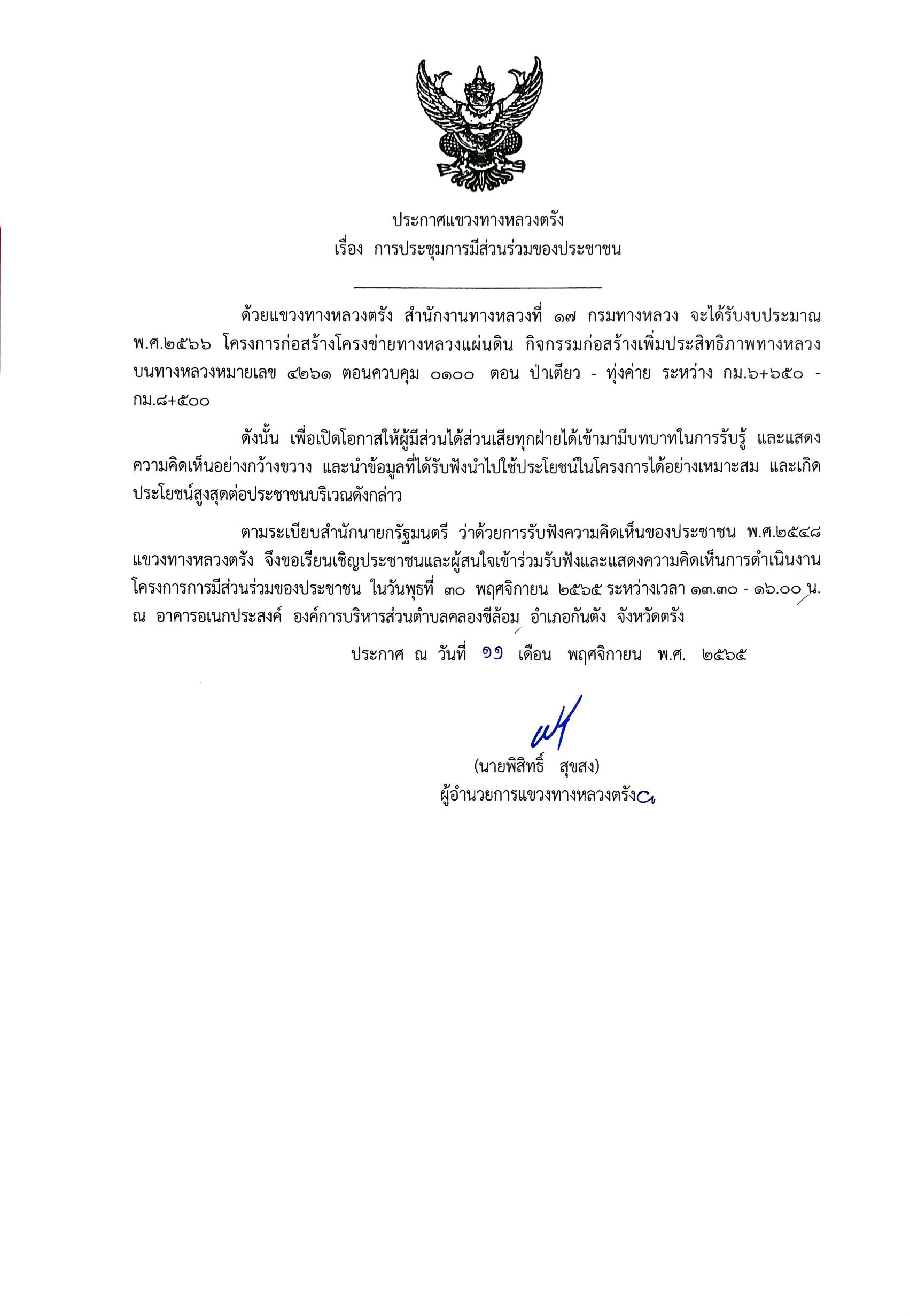 ขอเชิญเข้าร่วมประชุมการมีส่วนร่วมฯ ทล.4261