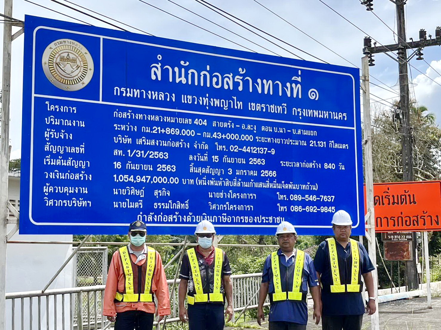 นายพิสิทธิ์ สุขสง ผู้อำนวยการแขวงทางหลวงตรัง พร้อมด้วย นายรุ่งโรจน์ รัตนพงศ์ รองผู้อำนวยการแขวงทางหลวง ฝ่ายวิศวกรรม ร่วมกับ นายวิศิษฎ์ สุรกิจ นายช่างโครงการ ลงพื้นที่ตรวจอุปกรณ์อำนวยความปลอดภัย ในโครงการก่อสร้างทางหลวงหมายเลข 404 สายตรัง - อ.ละงู ตอน บ.นา - บ.สามแยก ระหว่าง กม.21+869 - กม.43+000 เพื่ออำนวยความสะดวกและปลอดภัยกับผู้ใช้เส้นทาง